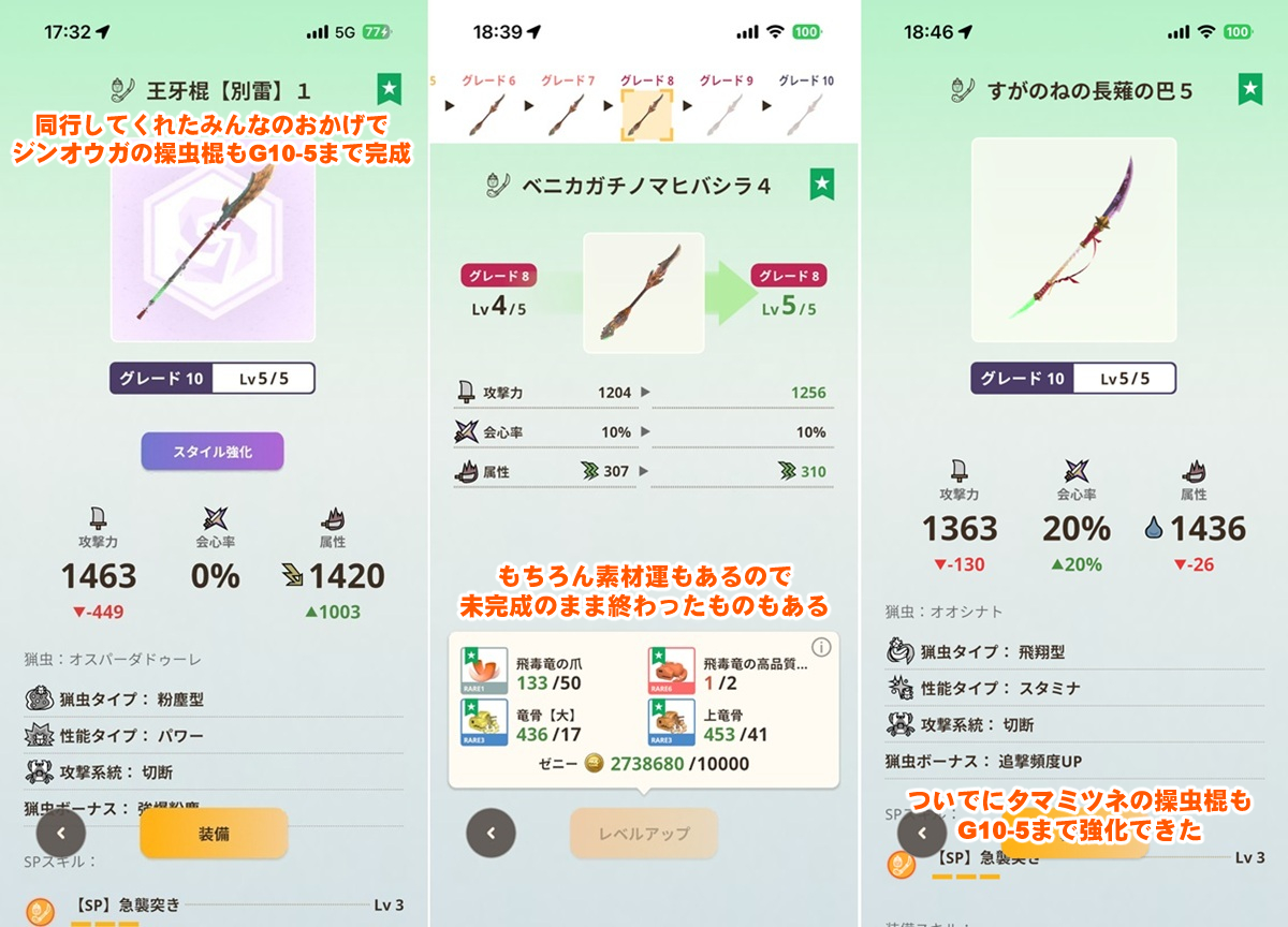そこで先日完成したジンオウガの操虫棍に必要なスタイル強化素材を、そして中途半端になっているトビカガチ亜種の操虫棍をG10-5まで強化したいところ。