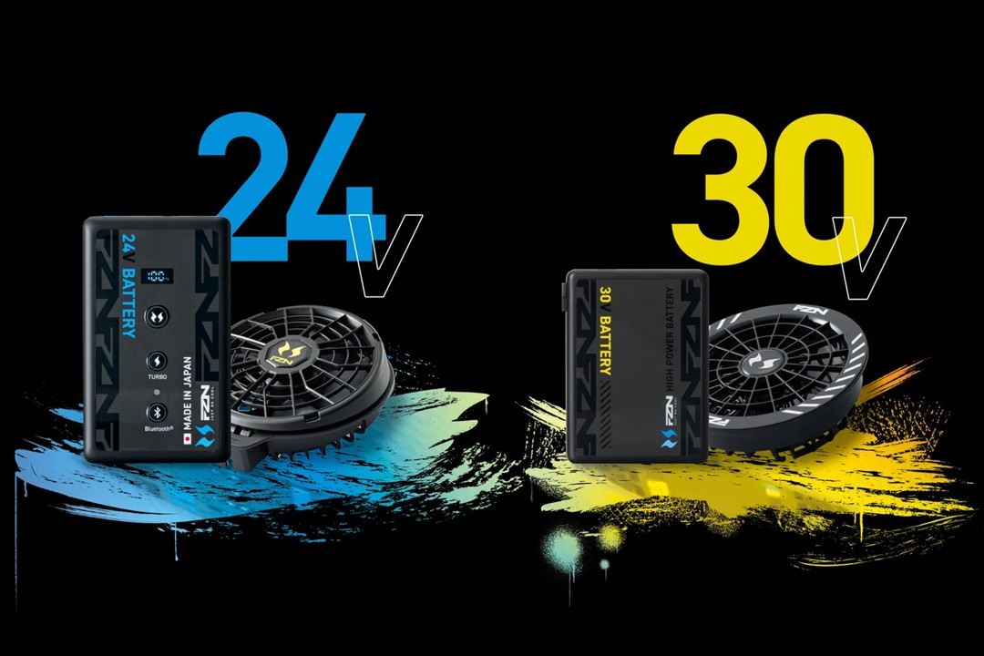 ファン付きウェア「FZN・空調風神服®」は、日本製バッテリー使用の「JapanLabel(ジャパンレーベル)」と海外製バッテリー使用の「GlobalLabel(グローバルレーベル)」の2つのレーベルを展開しています。