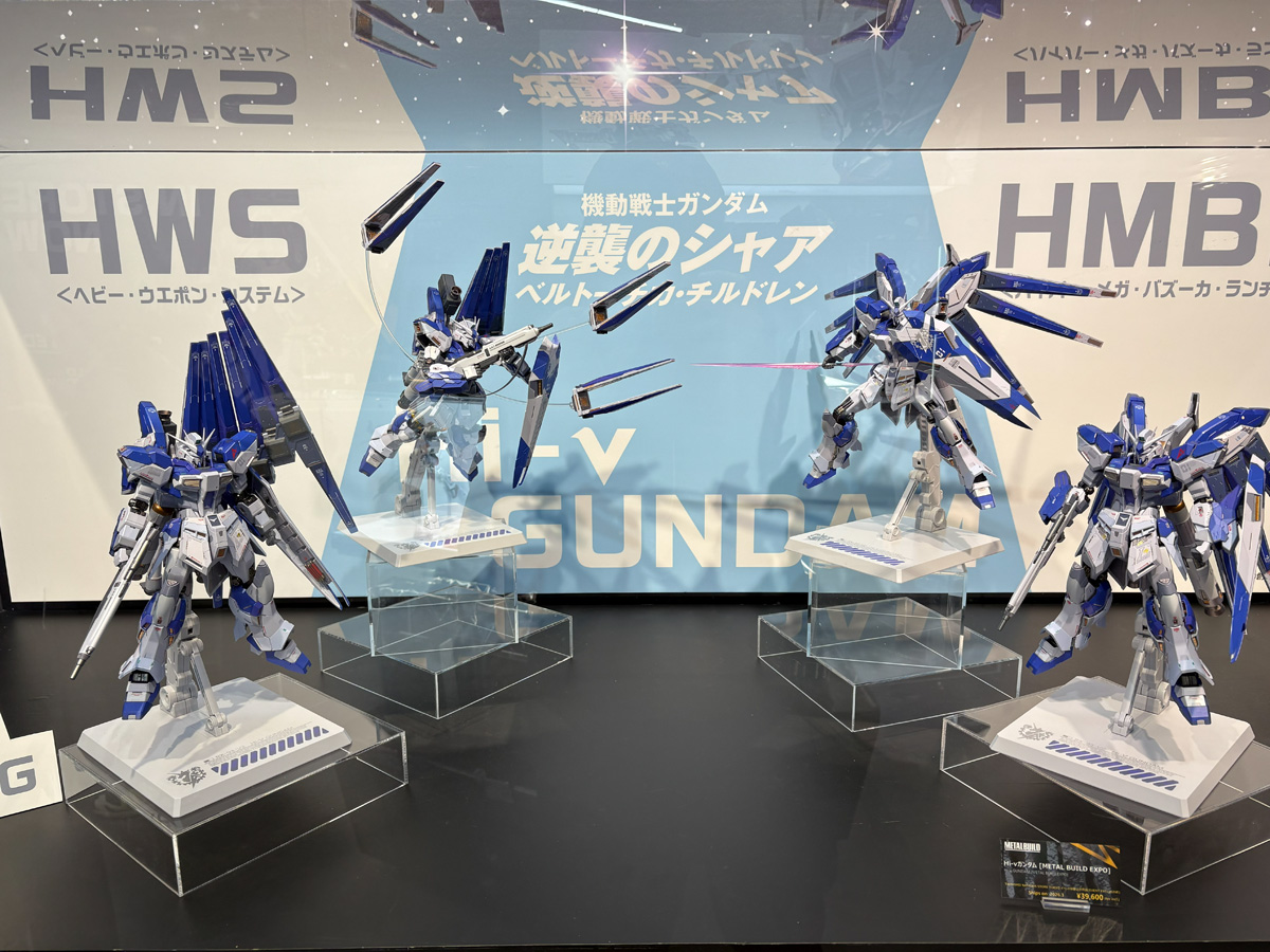 まず、イベント限定商品「METAL BUILD Hi-νガンダム [METAL BUILD EXPO]」の事後販売が実施中だ。2022年発売の「METAL BUILD Hi-νガンダム」をベースに全身のカラーリングを青と白基調の公式設定版配色に一新。新規のフィン・ファンネル懸架パーツにより、νガンダムを思わせる片側搭載のシルエットも再現でき、さまざまなディスプレイを楽しめる仕上がり。価格は39,600円(税込)となっている。