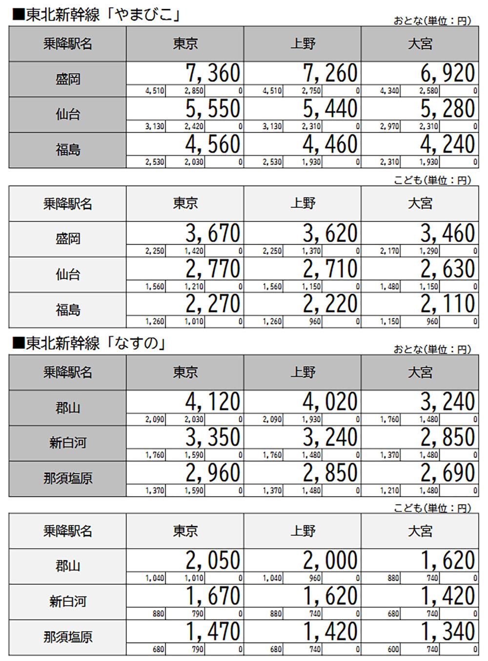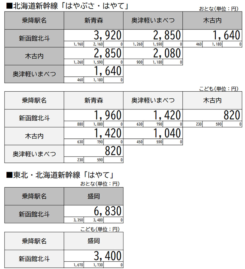 ※記事内の価格表は「えきねっと」公式サイトより引用