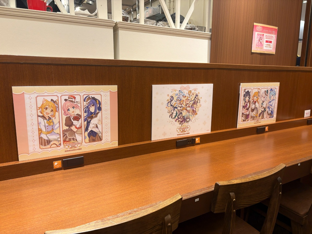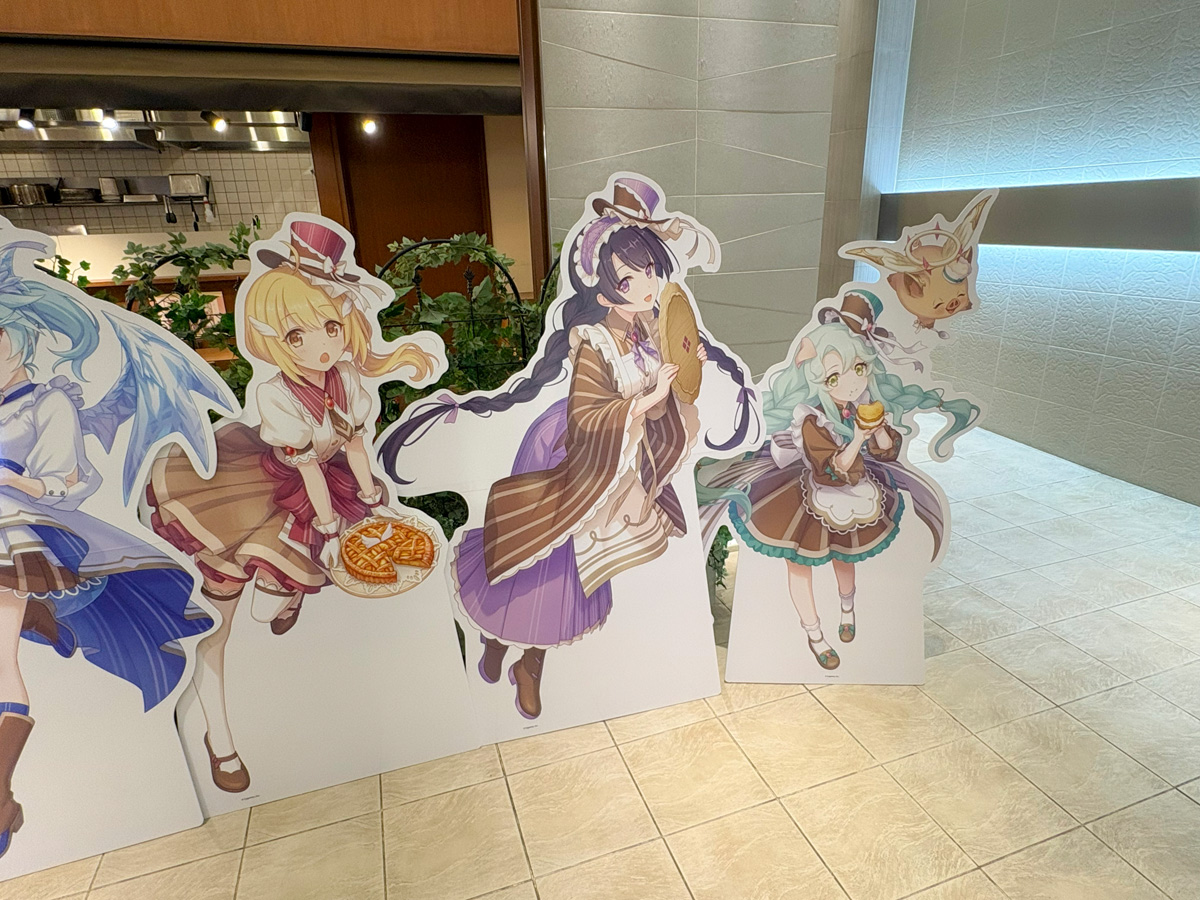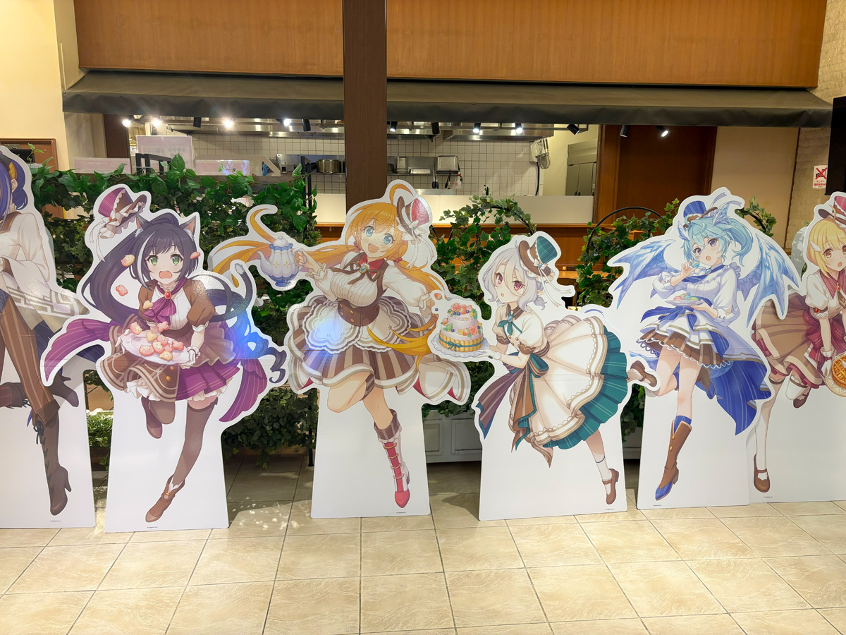 お店の壁面にもイラストを使用したパネルが展示されており、店内に足を踏み入れた瞬間から「プリコネR」の世界観にどっぷり浸ることができる。
