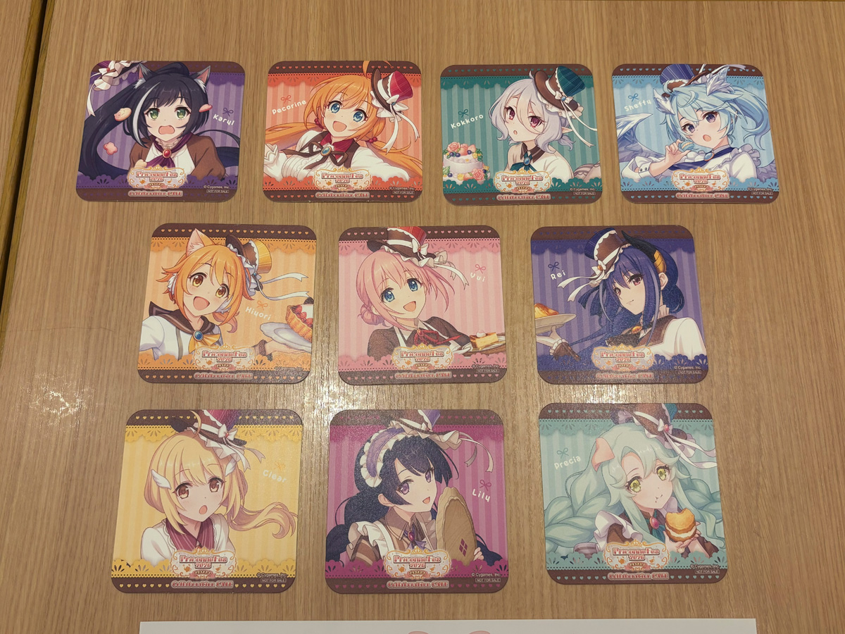 加えて、コラボメニュー1品につき特製コースターが1枚プレゼントされる。全10種のランダム配布で、「プリコネフェス2026」KVのイラストを使用した可愛らしいデザインだ。
