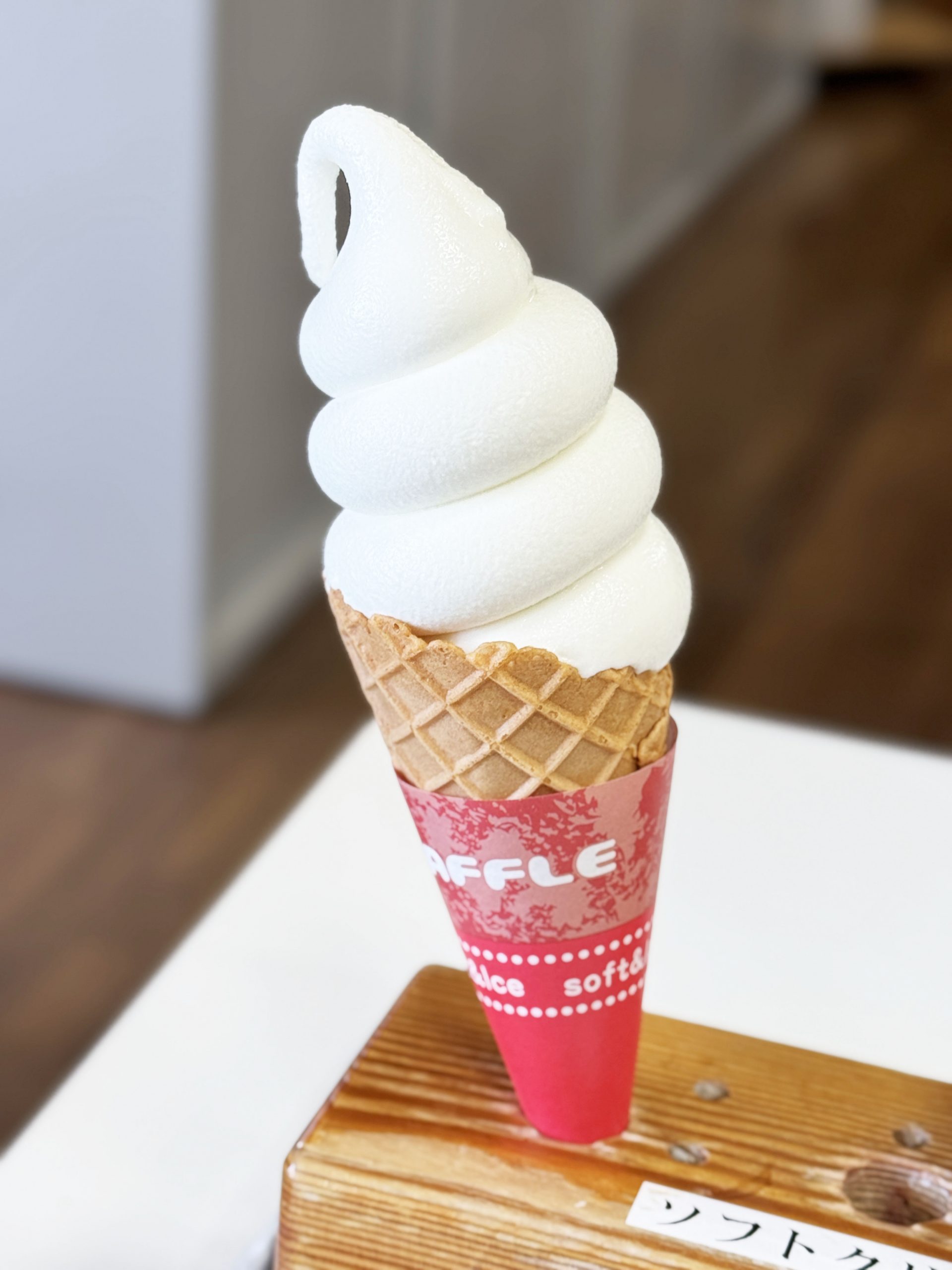 これ、実にウマイ。トロトロ系というよりは、食べてからゆっくり溶けていくタイプ。それでいて、しっかりと塩の存在を楽しませながら、ミルクの存在も感じさせてくれる。塩が甘味を引き立たせ、さらにミルクのコクも強くしてくれている。ソフトクリームを作る様子を見ていたのですが、とても興味深かったです。ソフトクリームは固形の状態で保存されていて、オーダーを受けてから、圧力でソフトクリーム化するタイプだった。このソフトクリームを食べるためだけに行っても良いレベルかもしれない。
