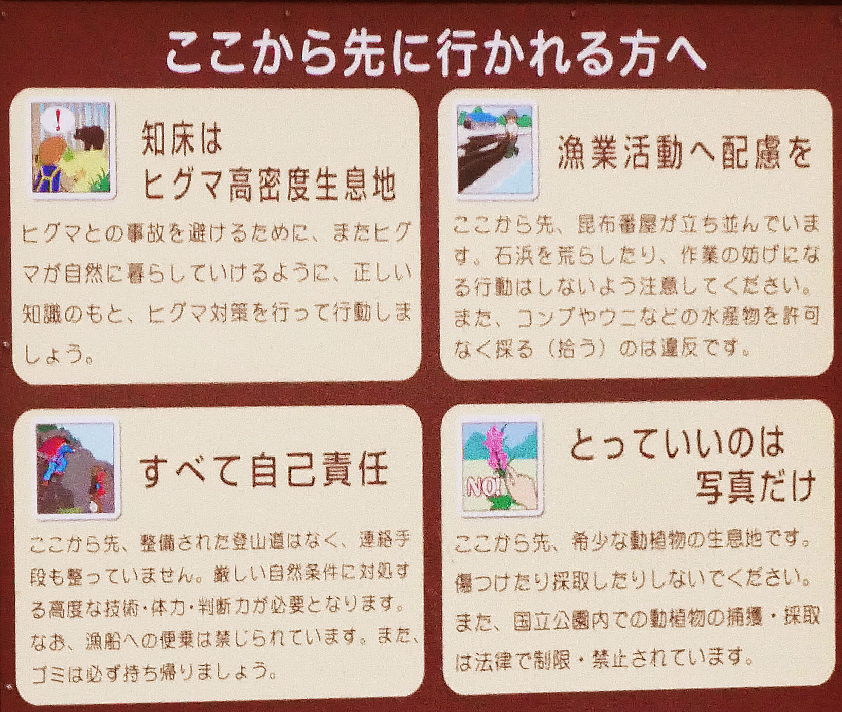 たとえば北海道は、海沿いに看板があることが多いです。