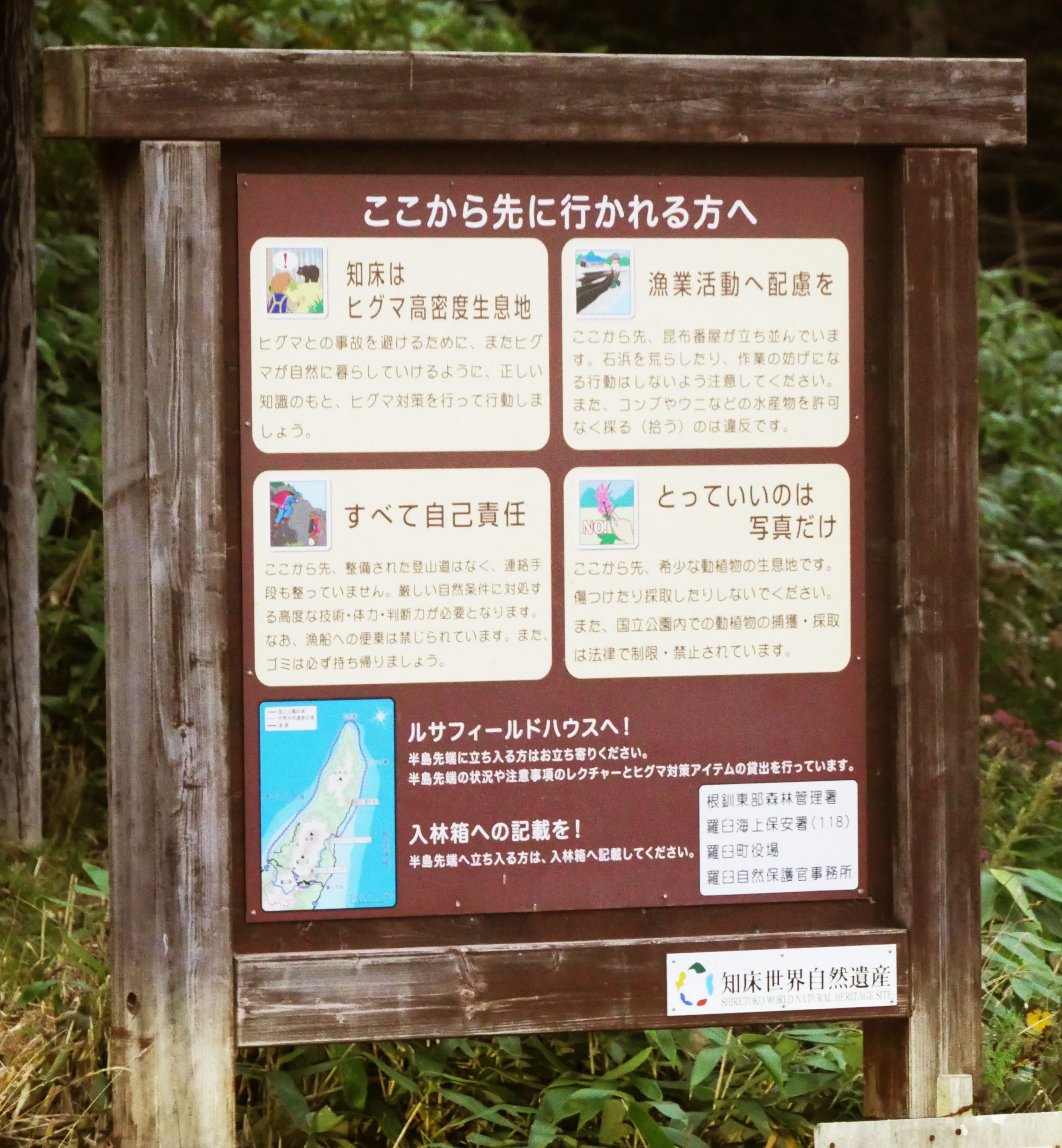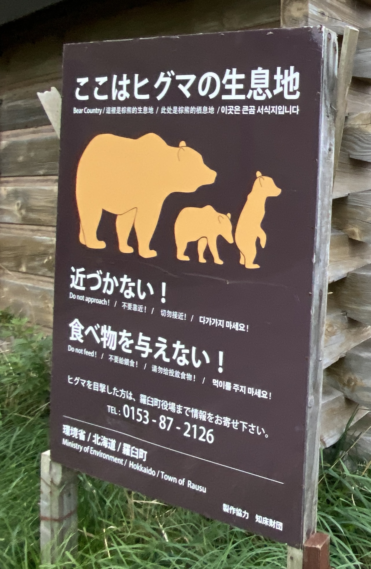 これは羅臼町付近の熊出没注意看板です。