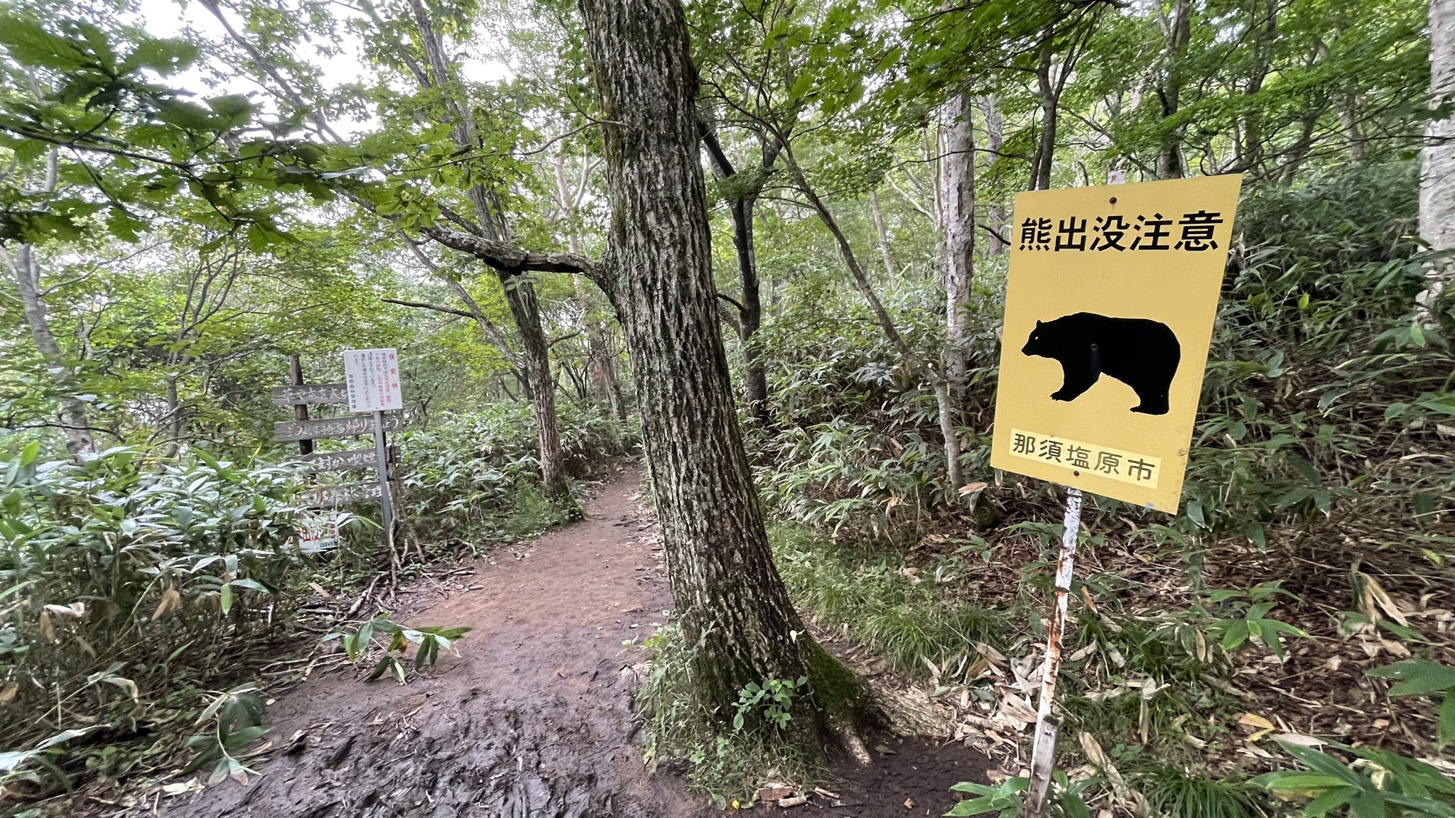 栃木県の避暑地・那須にも熊出没注意看板があります。