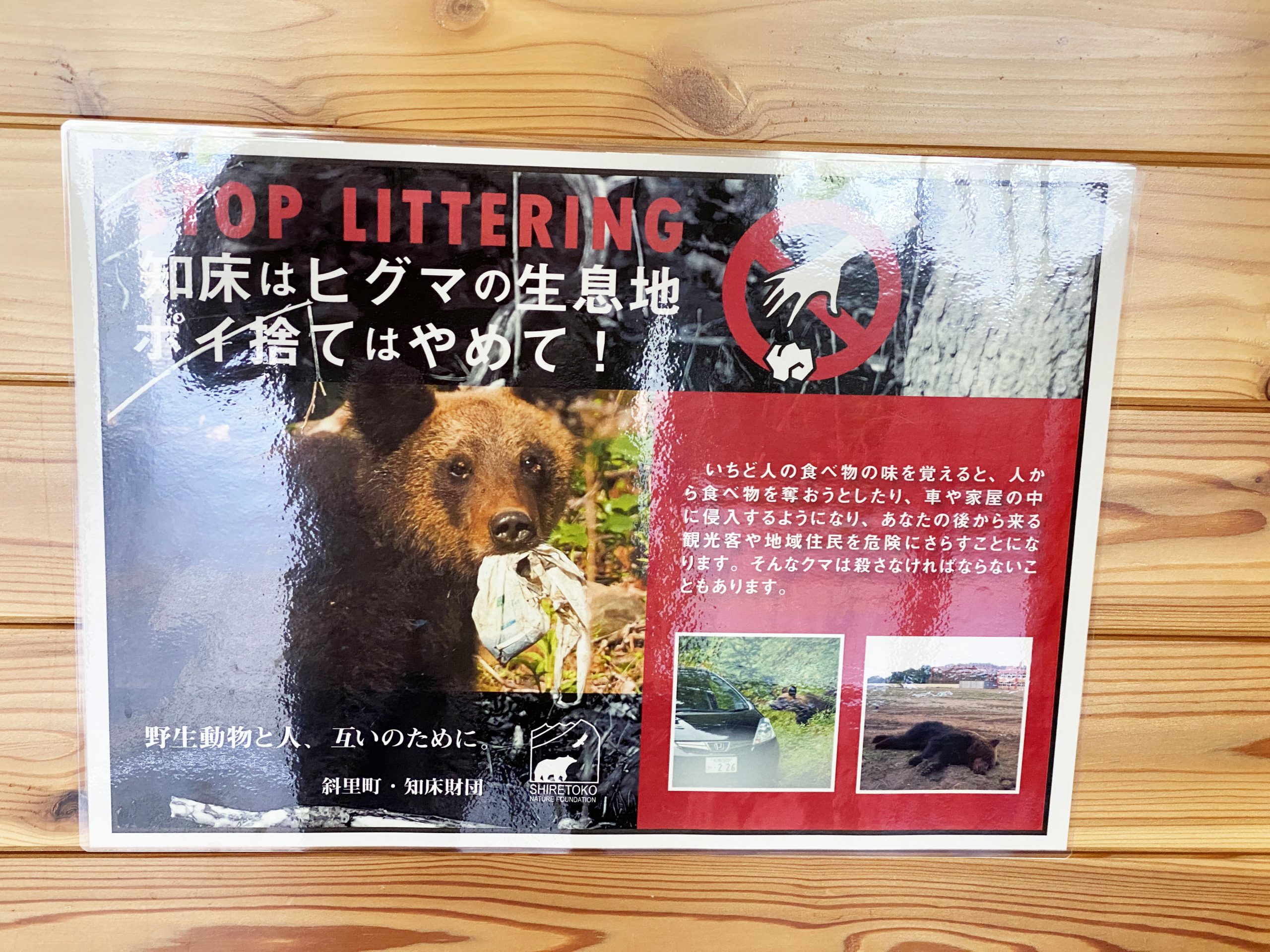 いや、熊出没注意看板というより「共存していることを忘れずに」という、地域の方向性を強く感じる貼り紙ですね。