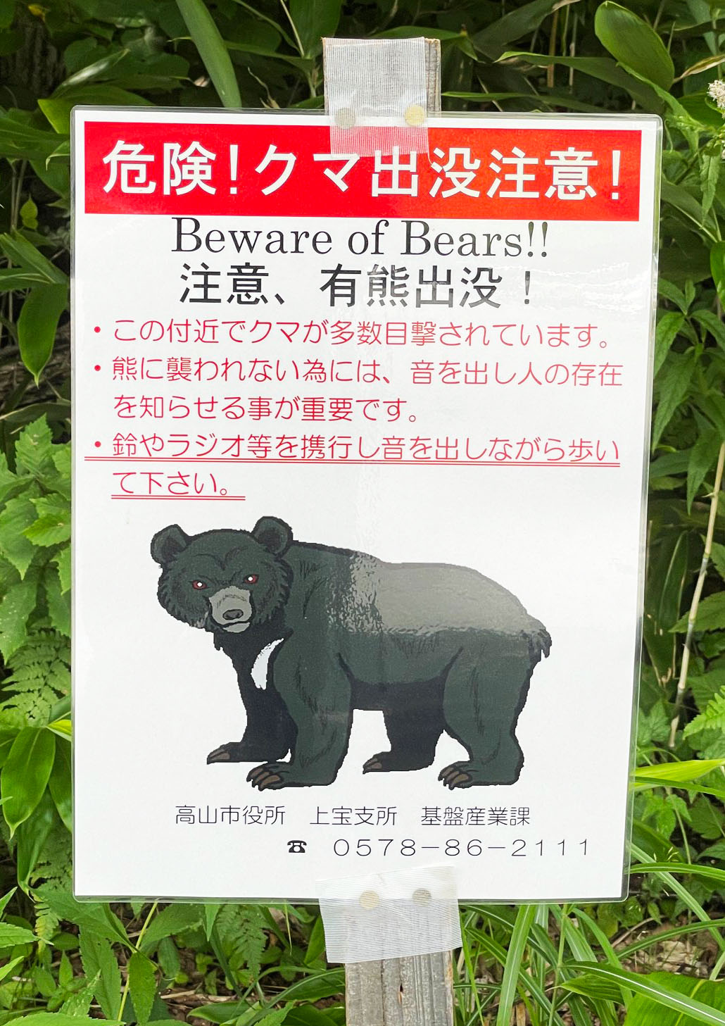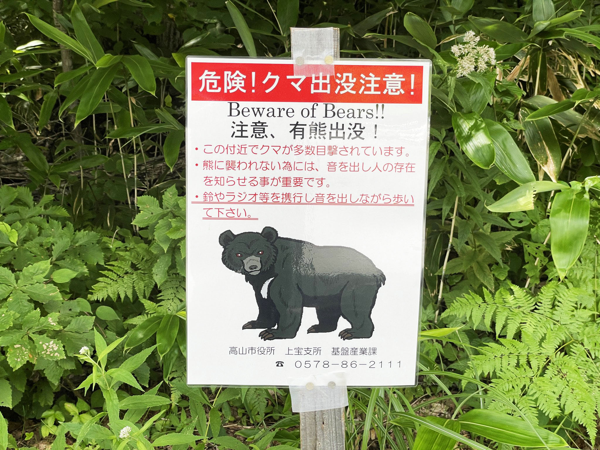高山市の奥飛騨の熊出没注意看板です。