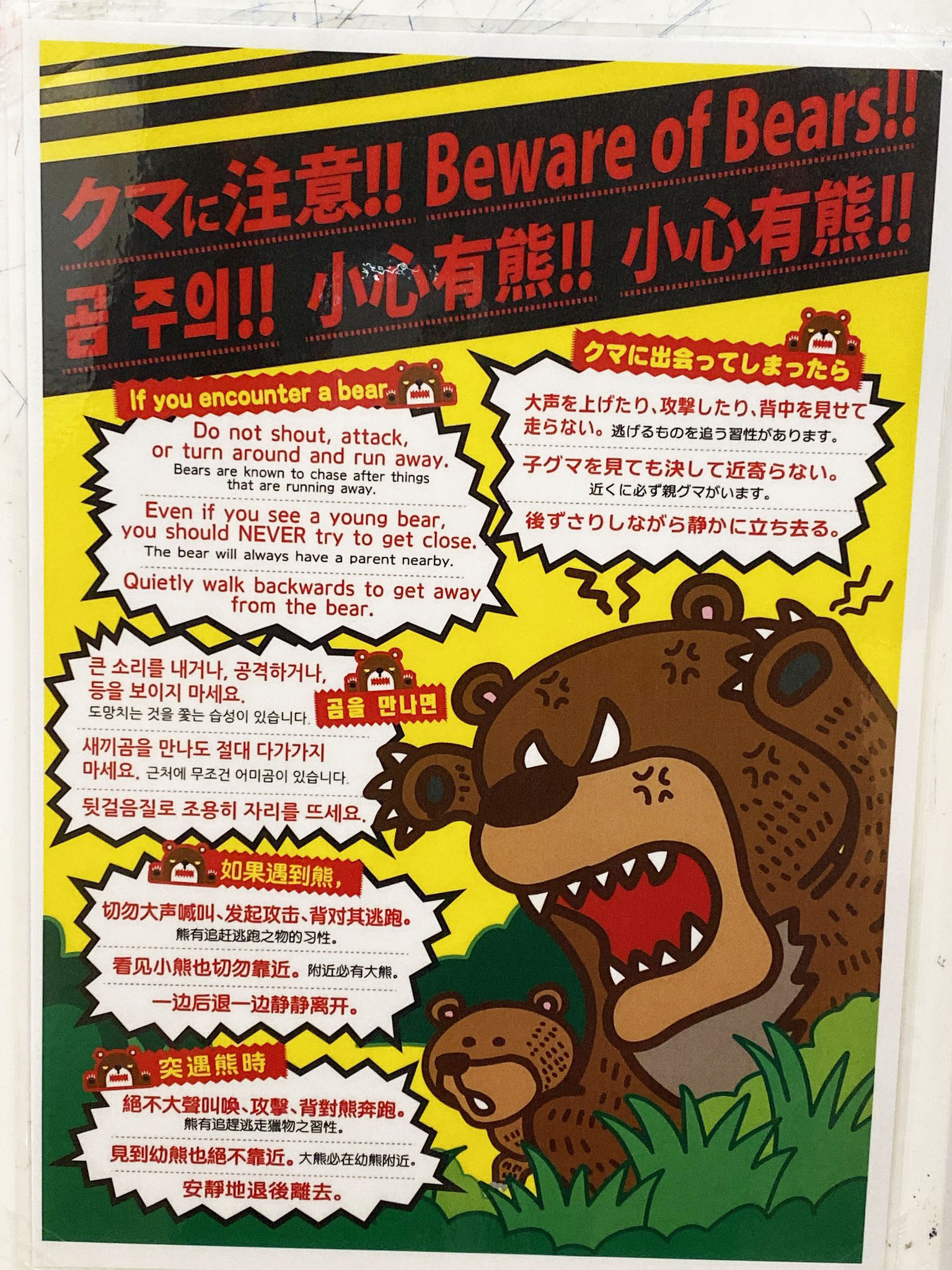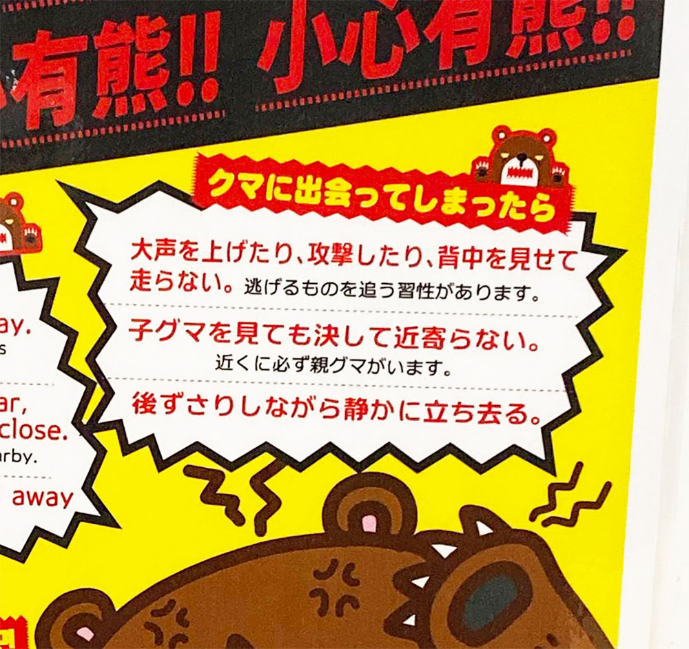 クマがほとんどいない地域に住んでいると、このような注意書きにも驚かされます。