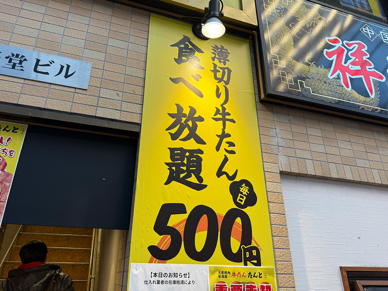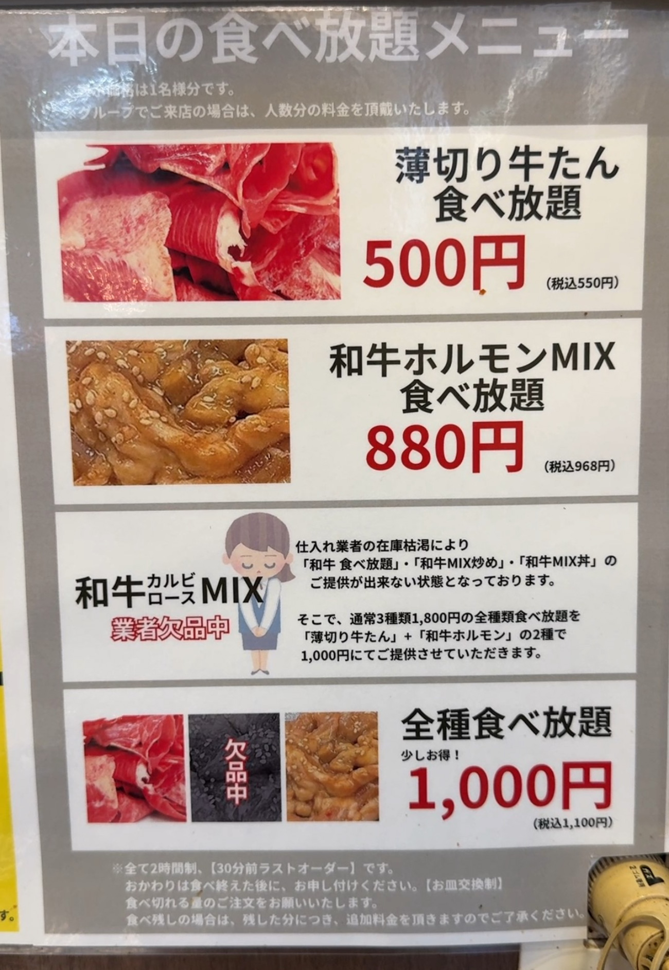 そのまま店内に入ってみると、なにやら牛タン食べ放題のほかにホルモンの食べ放題なんかもやっていることが判明しました。