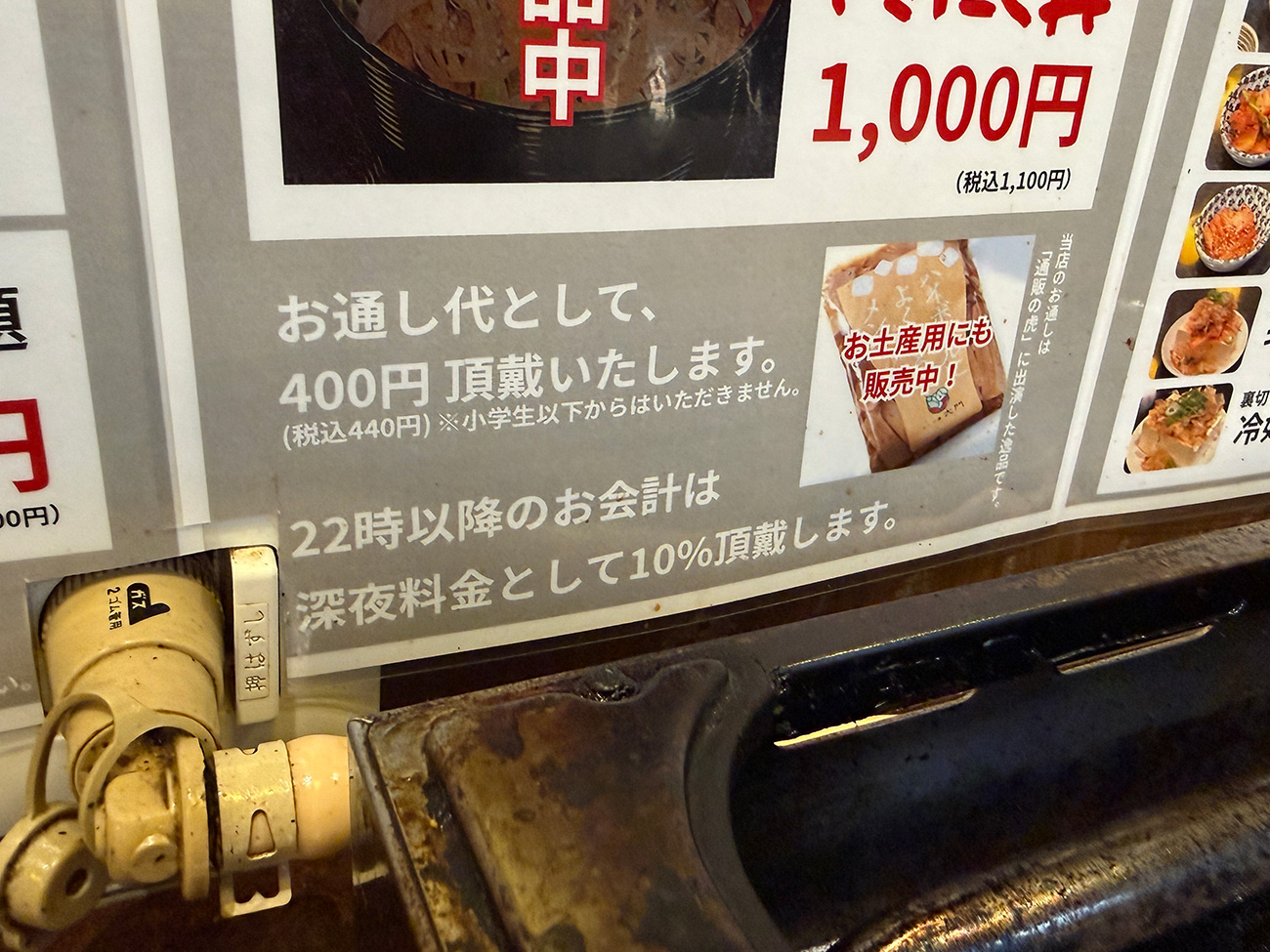 さすがにそんなに激安で済ませられるはずがないだろと思ってメニューを確認すると、別途お通し代で400円かかるということがわかりました。逆に安心しましたよ。まさかお通し代がかかってホッとすることがあるなんてなあ……。