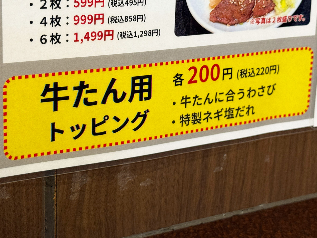 あと、牛タン用のトッピングとしてわさびや塩ダレが200円で用意されていました。なるほどなあ……ここに課金ポイントがあったか!