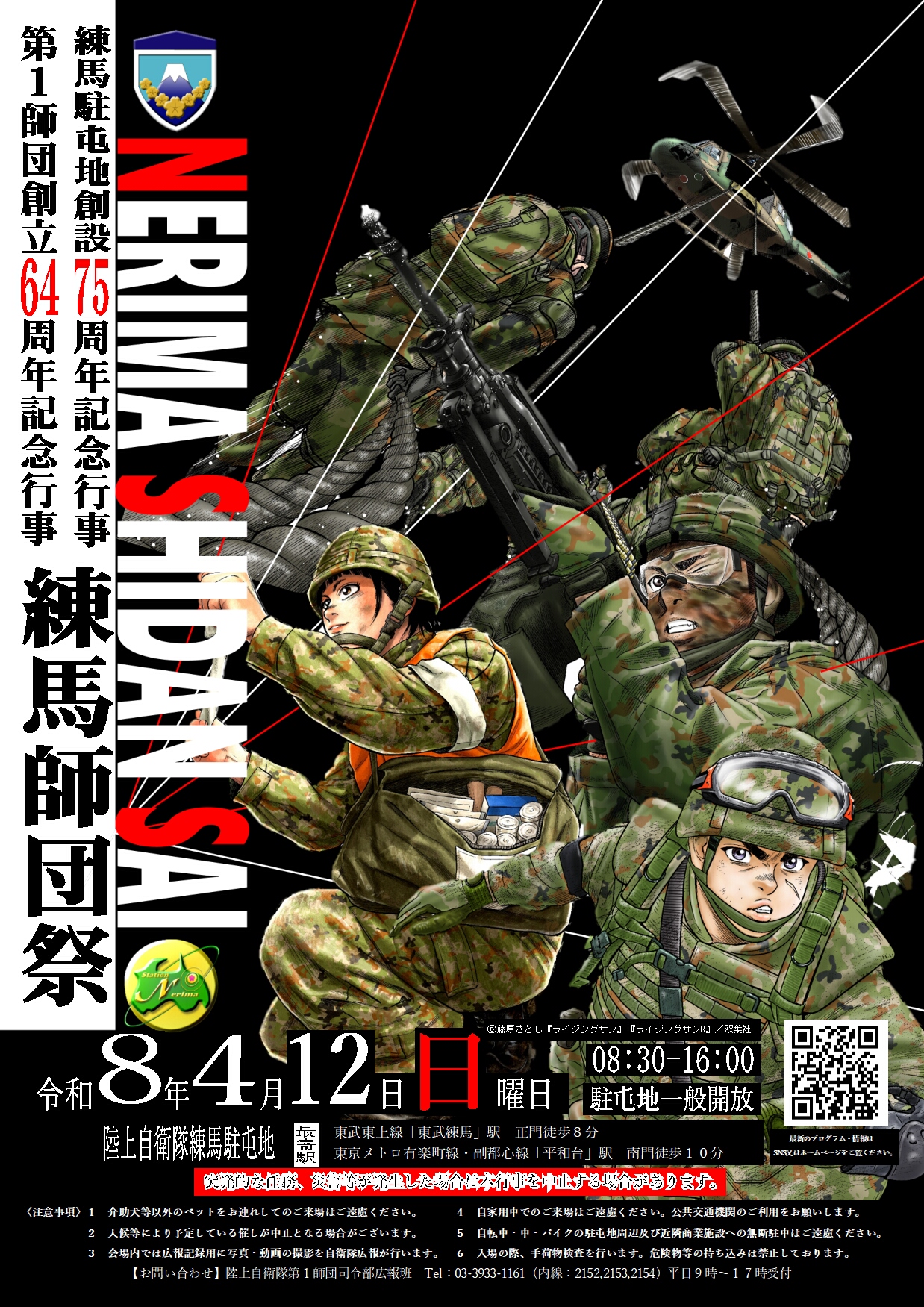 陸上自衛隊第1師団・練馬駐屯地は下記により記念行事を開催します。