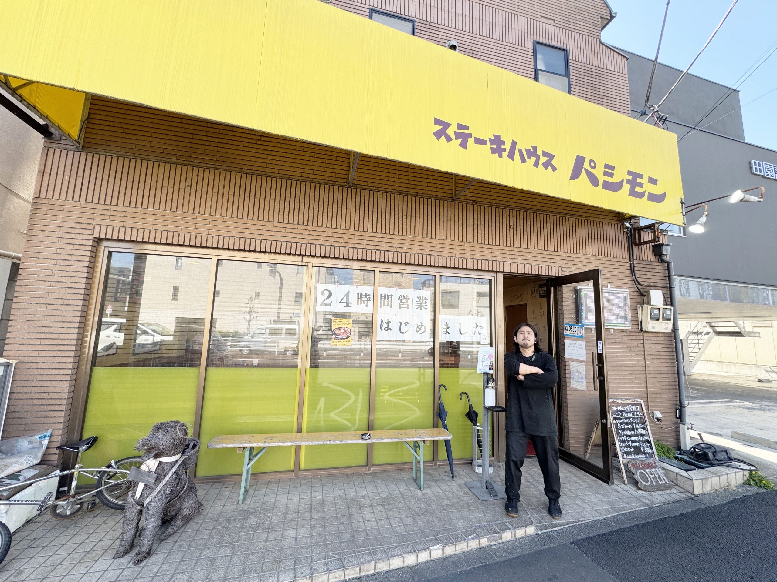 「週に一度は食べたくなるステーキ屋さん パシモンがまたクレイジーな事を始めました 5月6日まで24時間営業で休み無しみたいです 本当そういうとこが最高なんですが味も最高なんでみなさん是非行ってあげてください 鳥羽さんの投稿見ましたでなんかしてくれると思います 本当に最高なお店なんでよろしくお願い申し上げます」