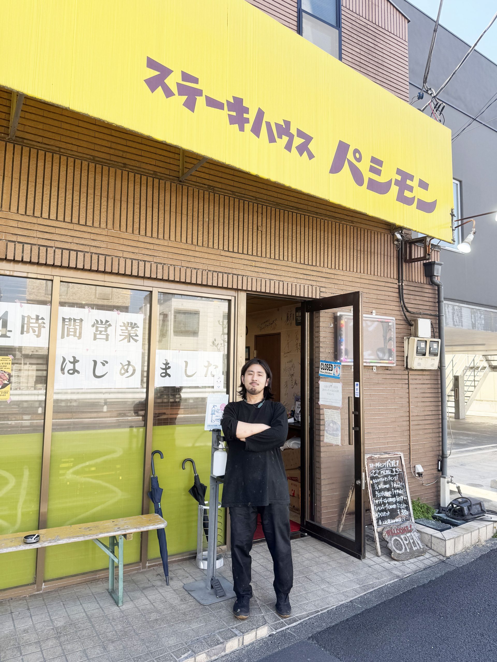 「週に一度は食べたくなるステーキ屋さん パシモンがまたクレイジーな事を始めました 5月6日まで24時間営業で休み無しみたいです 本当そういうとこが最高なんですが味も最高なんでみなさん是非行ってあげてください 鳥羽さんの投稿見ましたでなんかしてくれると思います 本当に最高なお店なんでよろしくお願い申し上げます」