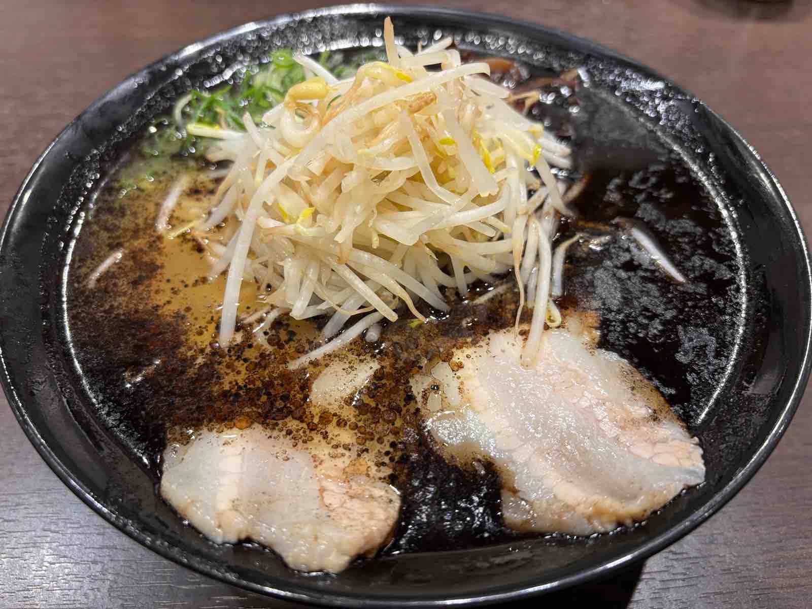 豚骨のすっきりとしたスープに自慢の黒マー油をたっぷり合わせている。旨味バッチリのスープにニンニクのクセになる香りとマー油の程よいビター感でとんでもない美味しさ。まさに横綱な一杯。