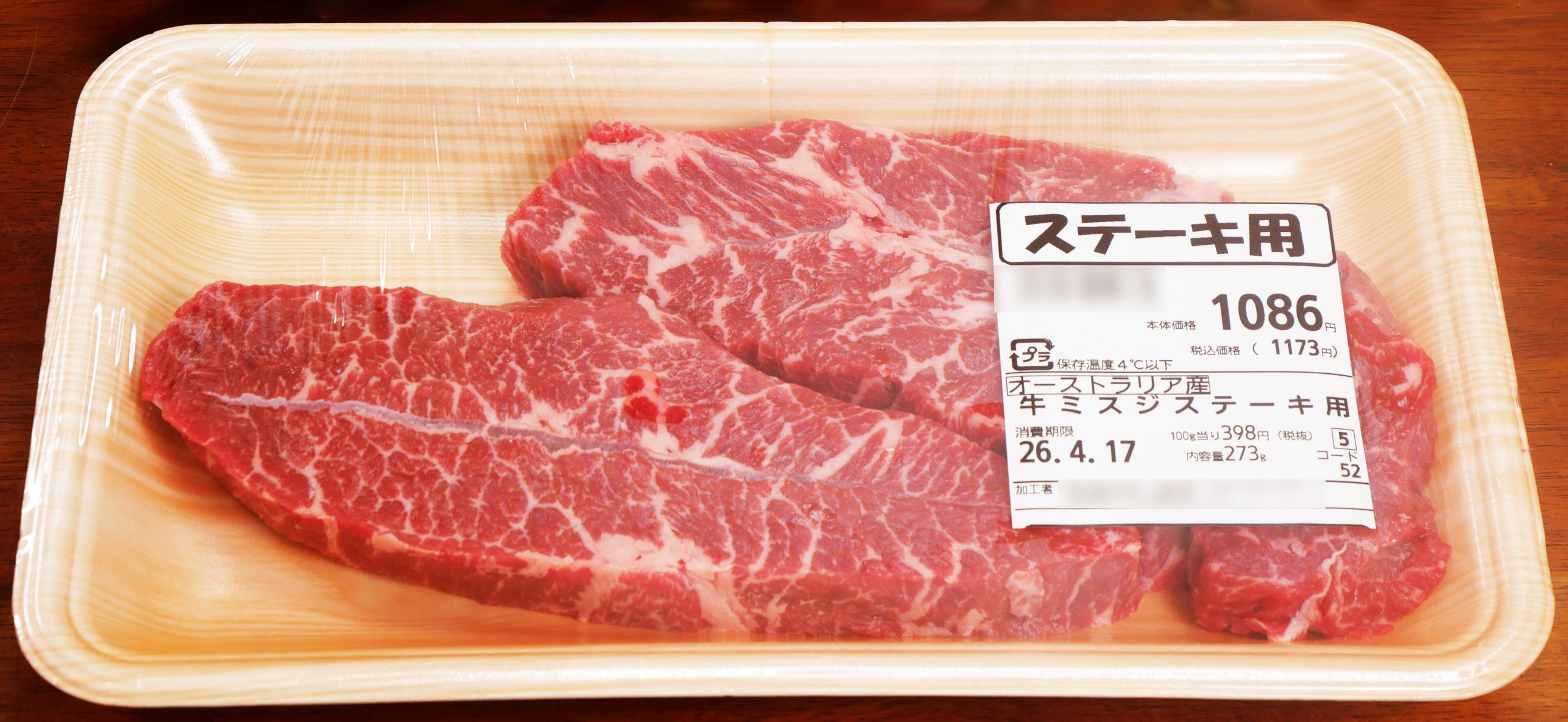 実際に「スーパーで買ったステーキ肉のおいしい作り方」を試してみた。今回購入したのは、格安な食品が多数販売されているスーパーマーケット「肉のハナマサ」のステーキ用牛肉。