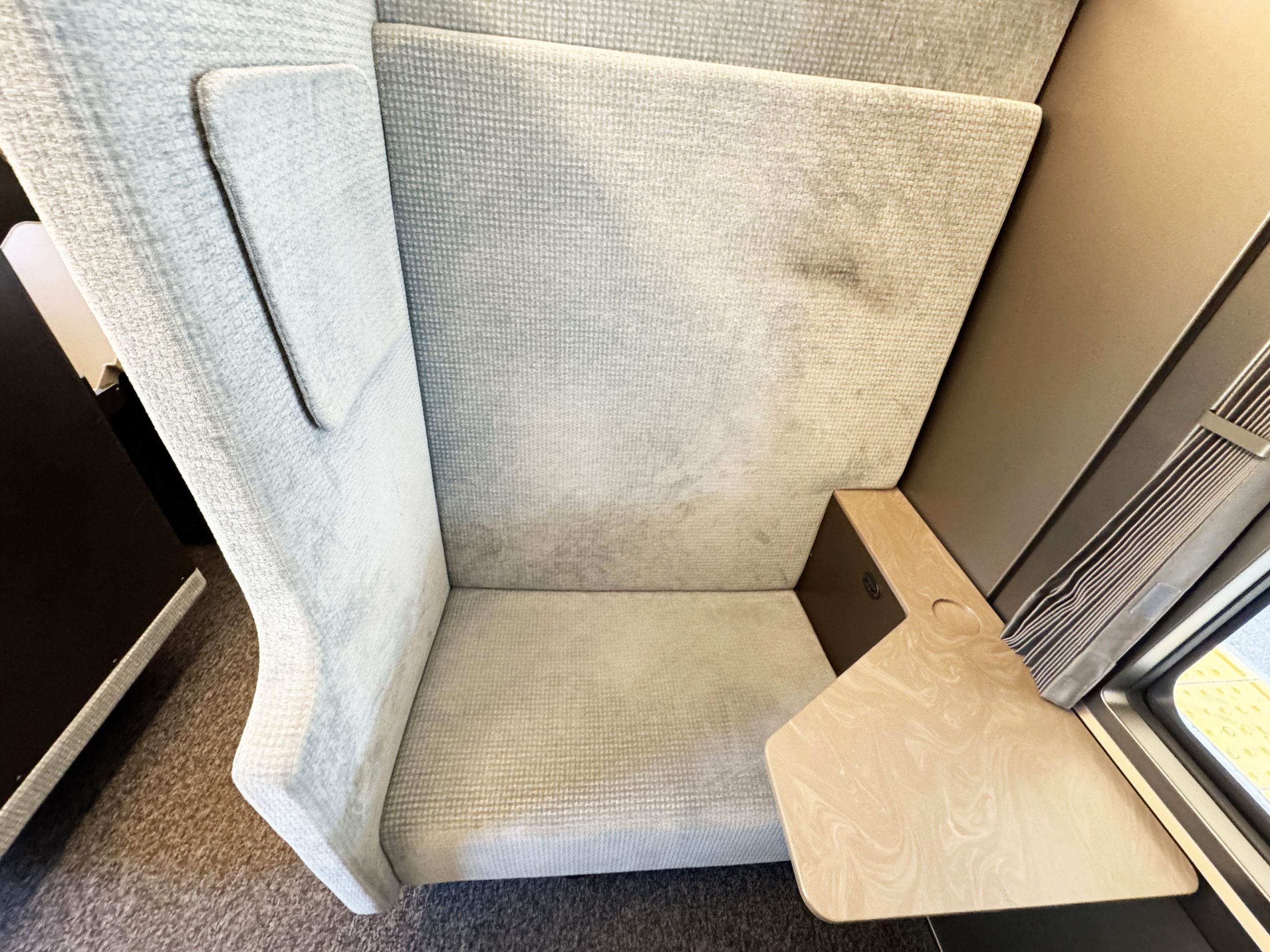 僕酢シートはちょっとしたプライいぺーと感があって良いのですが、通常のシートとは違い、背もたれが倒れません。なので背中はずっとフラットな状態。