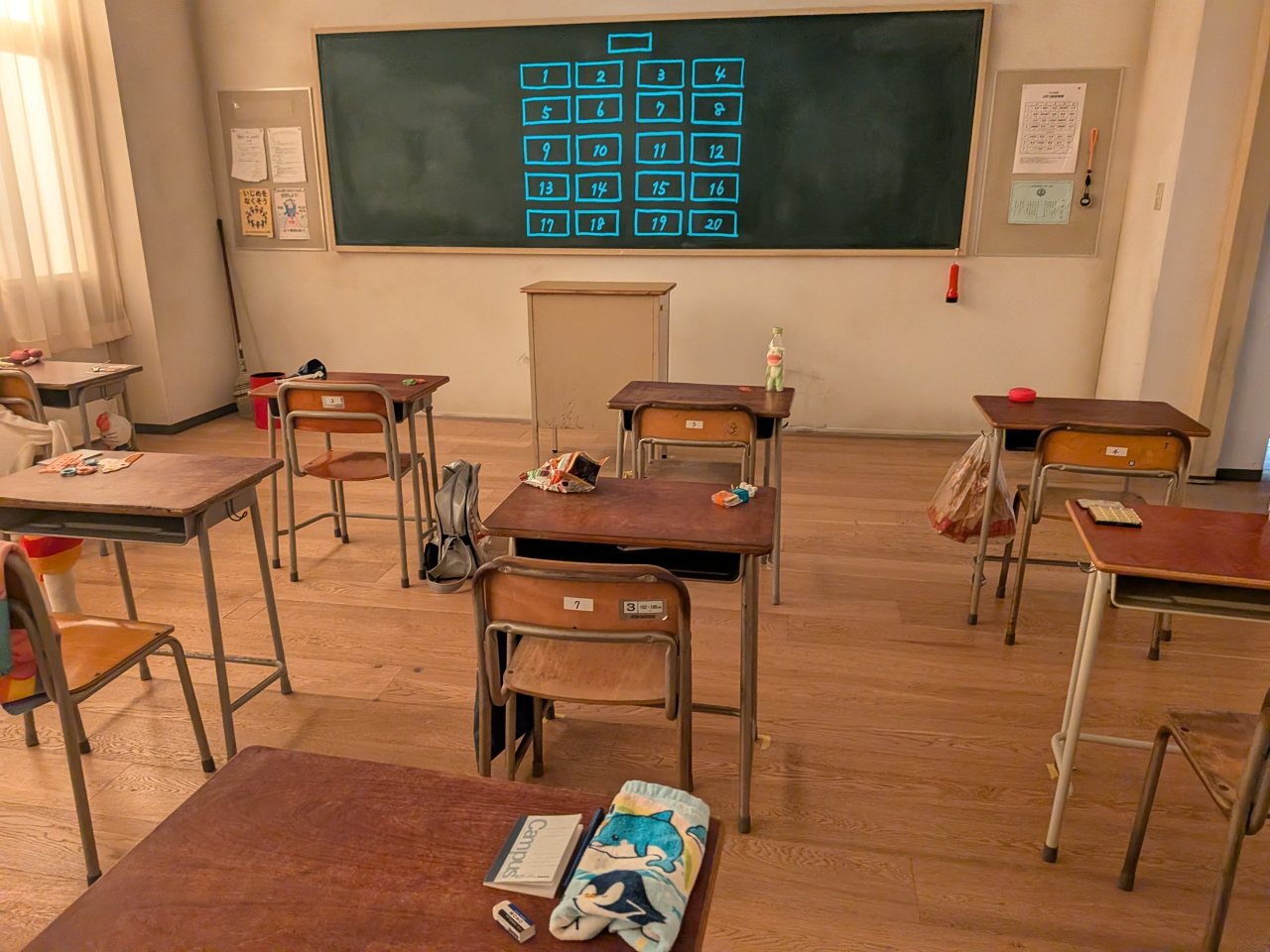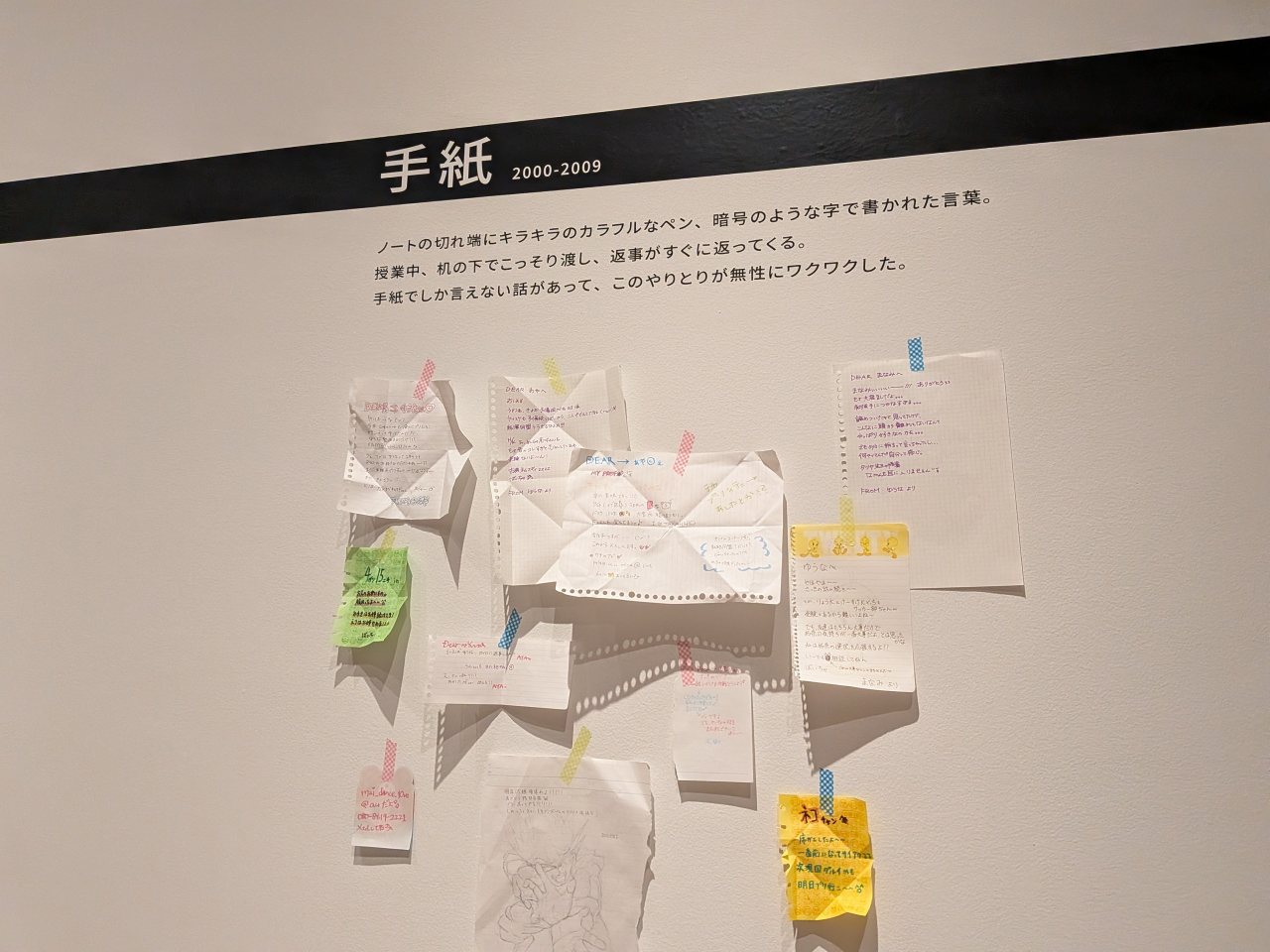 教室に入る前にスタッフの人に箱からクジを引くように言われ、出てきた番号の席に座ることに。ギャルっぽいアイテムが置かれた席、まじめに教科書が置かれた席などいろいろありました。私が座ったのは、ノートに数式が書かれていたので理系の生徒の席だったようです。夕暮れの教室のようなエモさ漂う空間で、黒板に映し出される平成恋愛についてのムービーを見ていたら、次第に高校時代に年齢退行。最後に、机に手紙が入っていると言われ、手を入れたら本当に手書きの紙が入っていました。受験前で焦りつつ、友達カップルを冷やかすような内容。男女交際率が低い女子高出身なので、別世界の青春が羨ましいです。