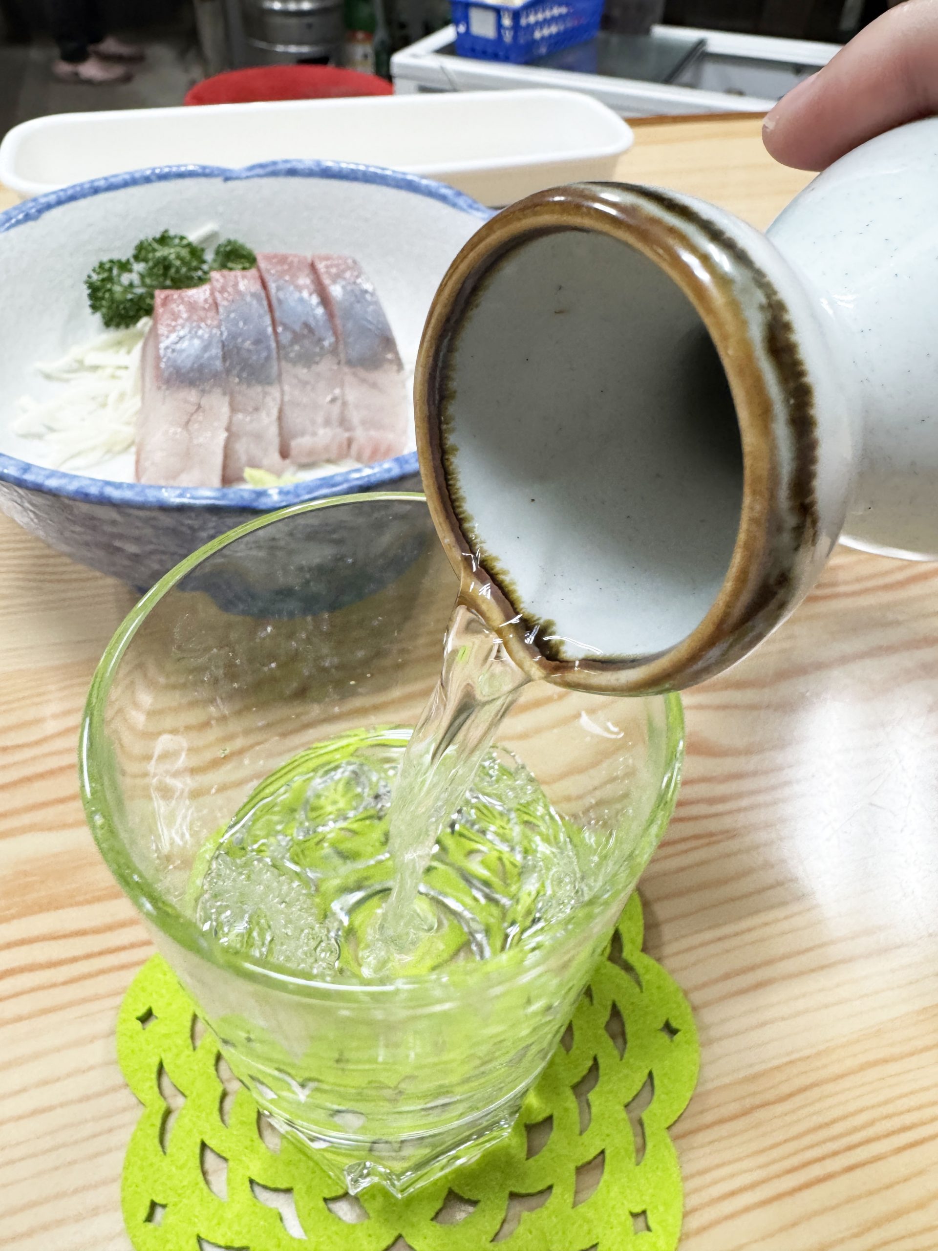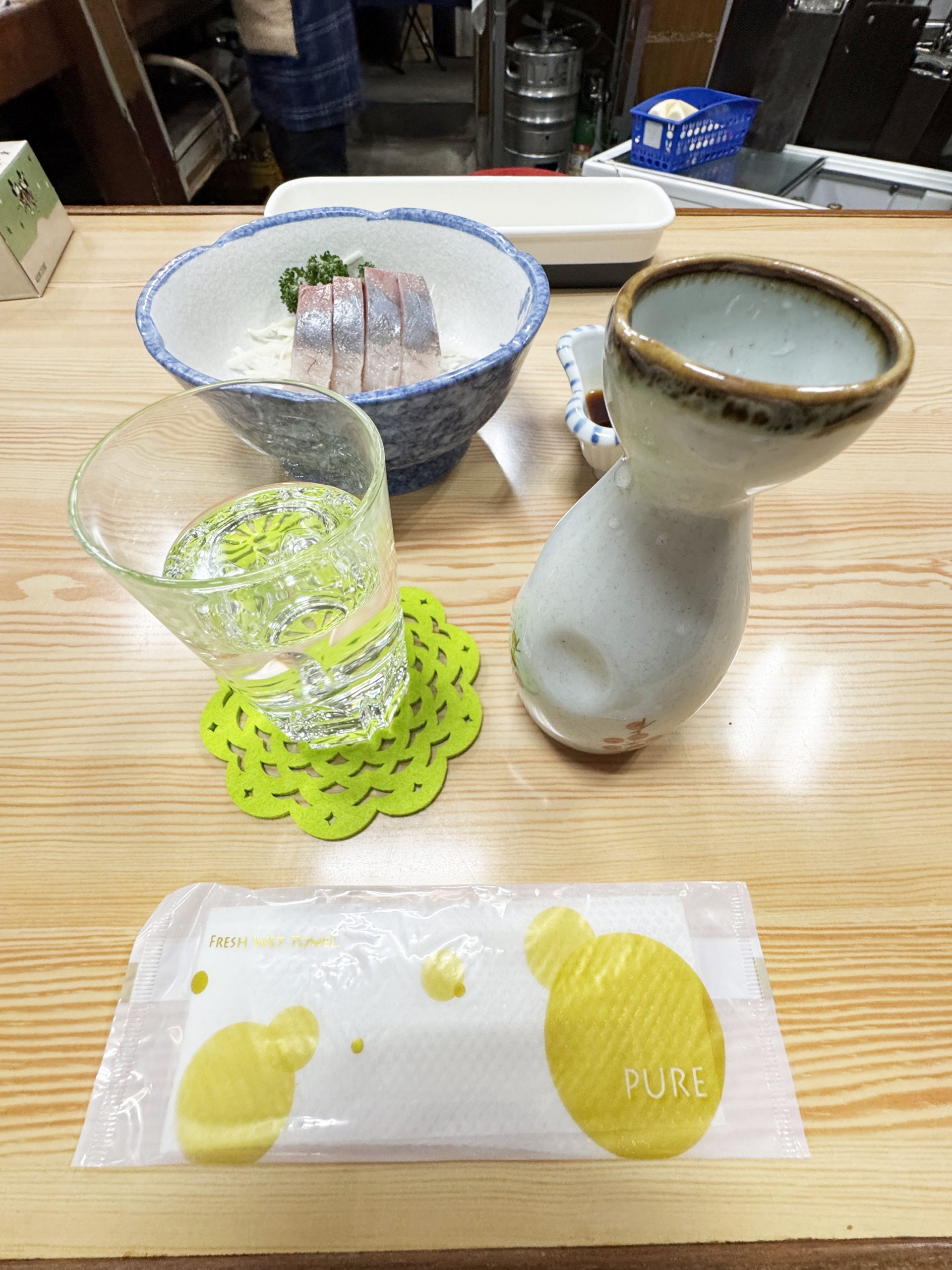 とりあえずお好み焼きをオーダーしつつ、刺身と日本酒も注文。