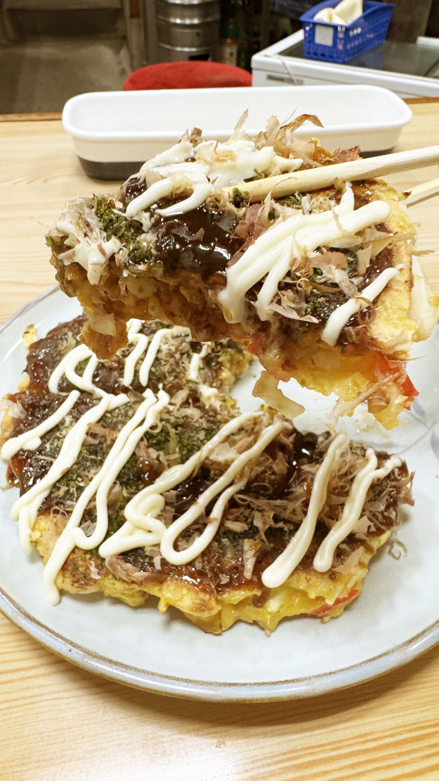 ここのお好み焼きには、たっぷりとマヨネーズをかけて食べたい。