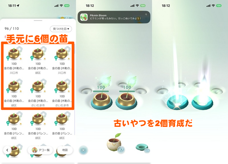 その後、新たに「金の苗」を2個獲得し計6個寝かした状態になっている。