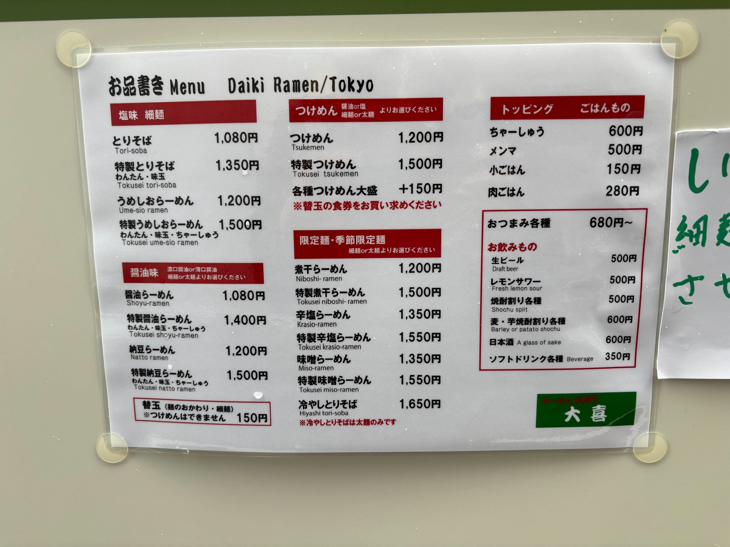 移転という節目を迎えながらも、その味は揺るぎないどころか、むしろ一層の円熟味を帯びているように感じられた。ラーメンという料理の本質を静かに、そして力強く示し続ける存在──それが「大喜」だ。