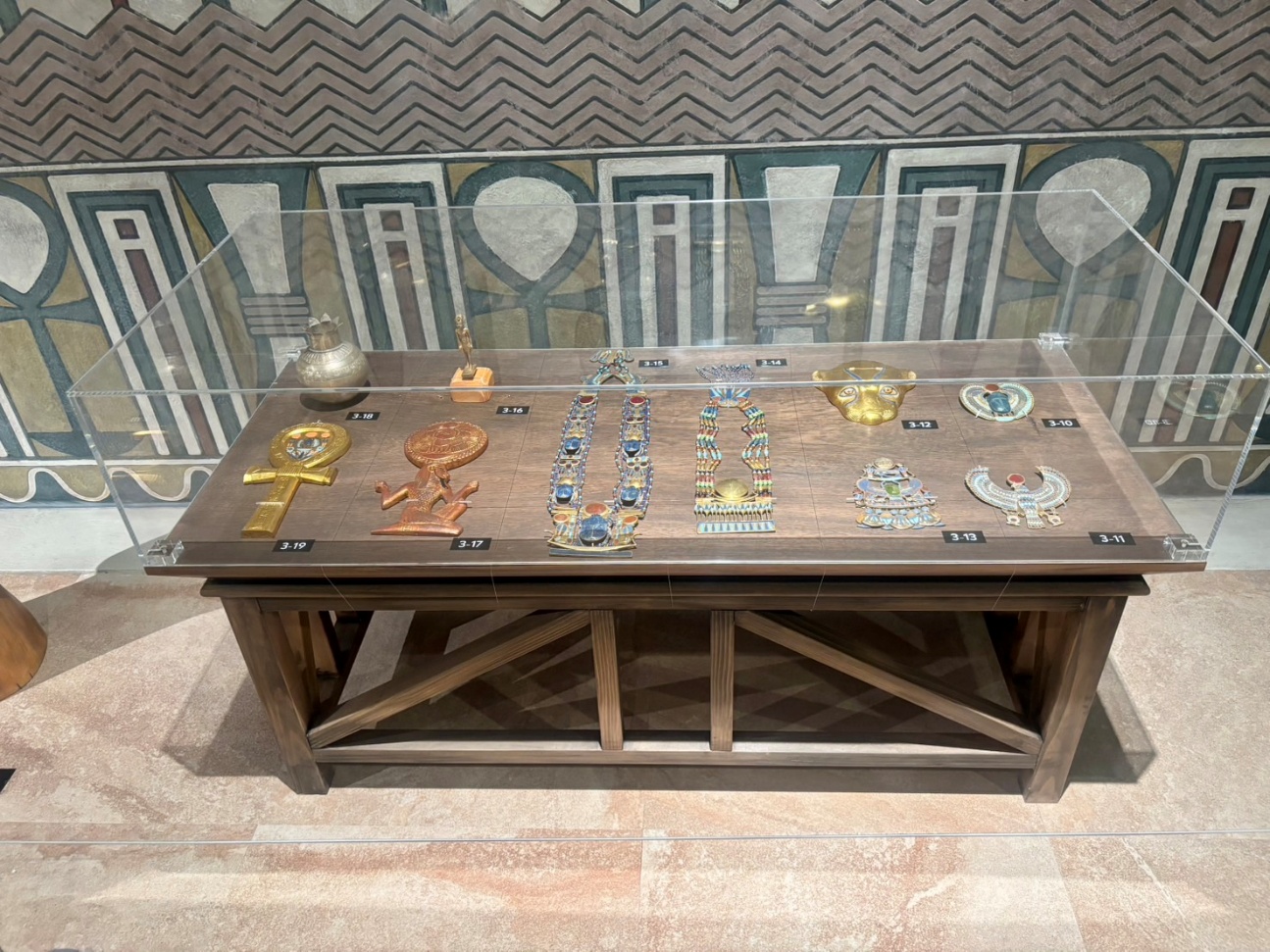 さらに印象的だったのが、実際の埋葬空間を再現したコーナー。王墓の内部構造や副葬品の配置がまるごと再現されており、まるで発掘前の王墓に足を踏み入れたような感覚があります。写真では伝わりにくいのですが、これぞ体験型!と心躍ったので、ぜひ会場に足を運んでみてください。