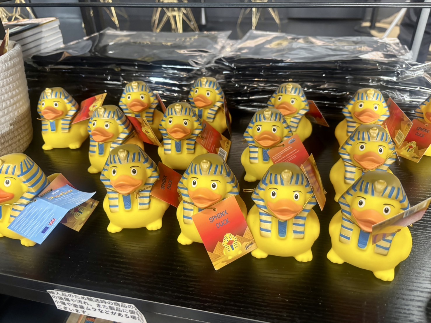 全体を通して感じたことですが、単なる展示ではなく、それら全てを線で感じることができる立体的な空間にとても魅力を感じました。”綺麗だな、すごいなで終わらせない”という気概を作り手からビシバシ感じ、魅力に吸い寄せられた結果数時間じっくりとまわり、最後はミュージアムショップへ。Tシャツやボールペンなど王道のお土産からアヒルのツタンカーメンまで幅広いラインナップで最後までわくわくしながら会場を後にしました。