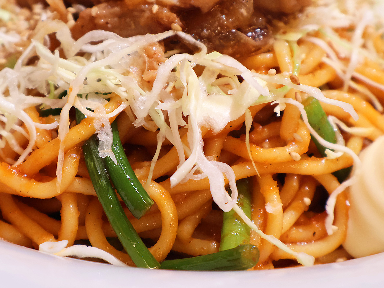 「どうせなら生姜焼きはご飯と食べたいナ……」なんて思わないことはなかったけど、「ぜひガッツリ混ぜて食べてください!」なんつって提供されちゃったので、まぜそばの如く混ぜ混ぜしていただきます。
