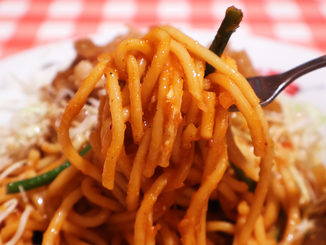 大胆なようで緻密。ナポリタンの具材として生姜焼きもニンニクの芽も完全に成立してるし、ガッツリエッセンスを足したナポリタンも生姜焼きのおいしさをしっかりと引き立ててる。しかも変化球ではあるけど、ナポリタンという土俵からはまったく外れていない! 変化球は変化球でもツーシームとかカットボールくらいの変化球だ!