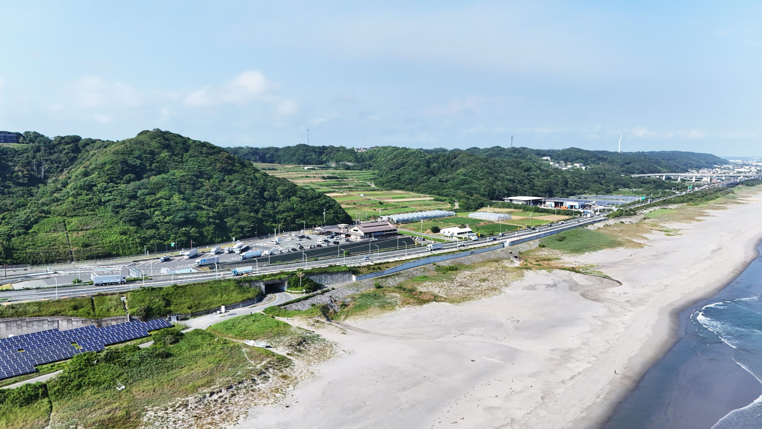 静岡県の美しく長い砂浜、白須賀海岸の近くにある。