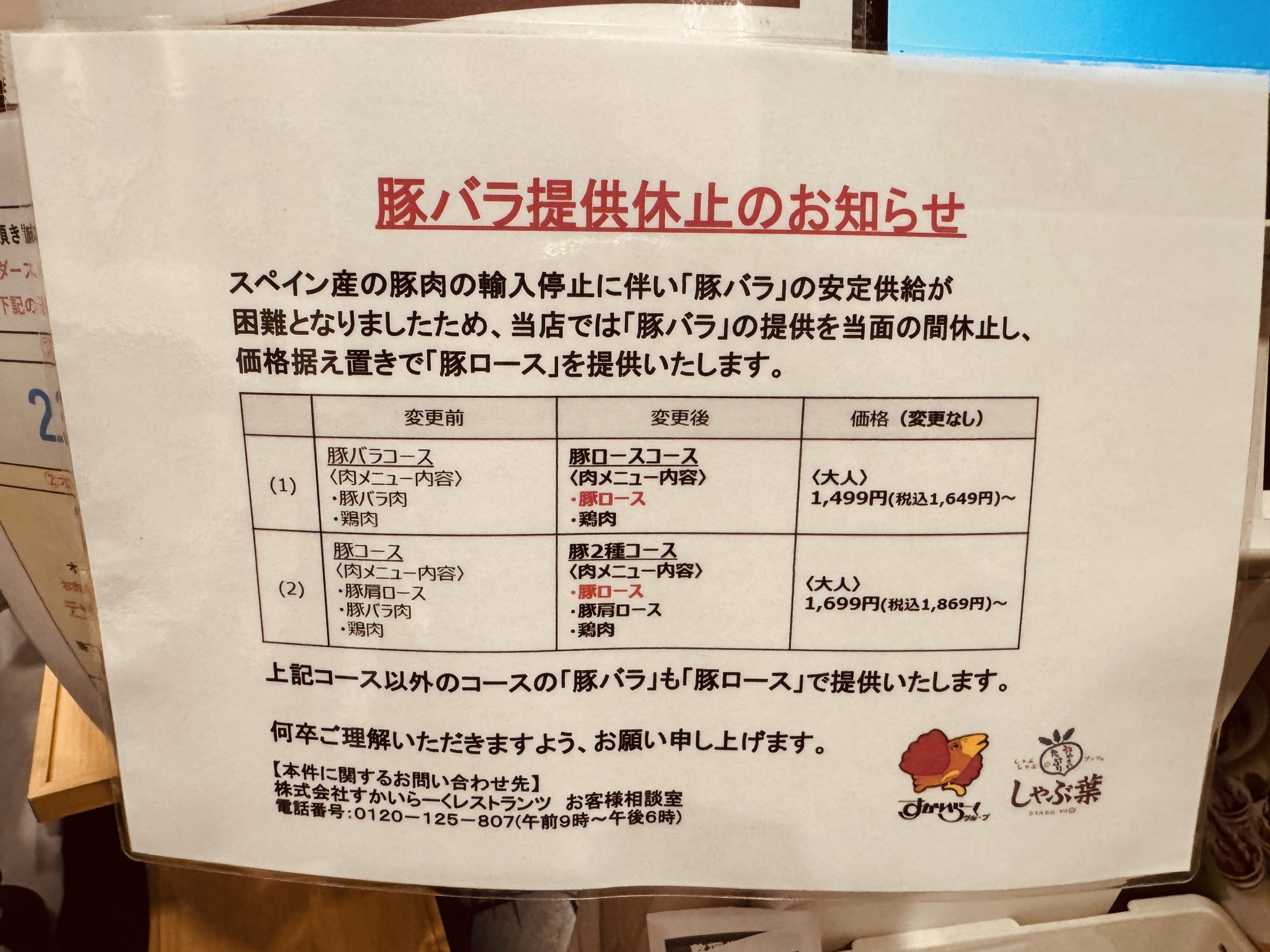 豚バラの代わりに、豚ロースの提供を開始しました。