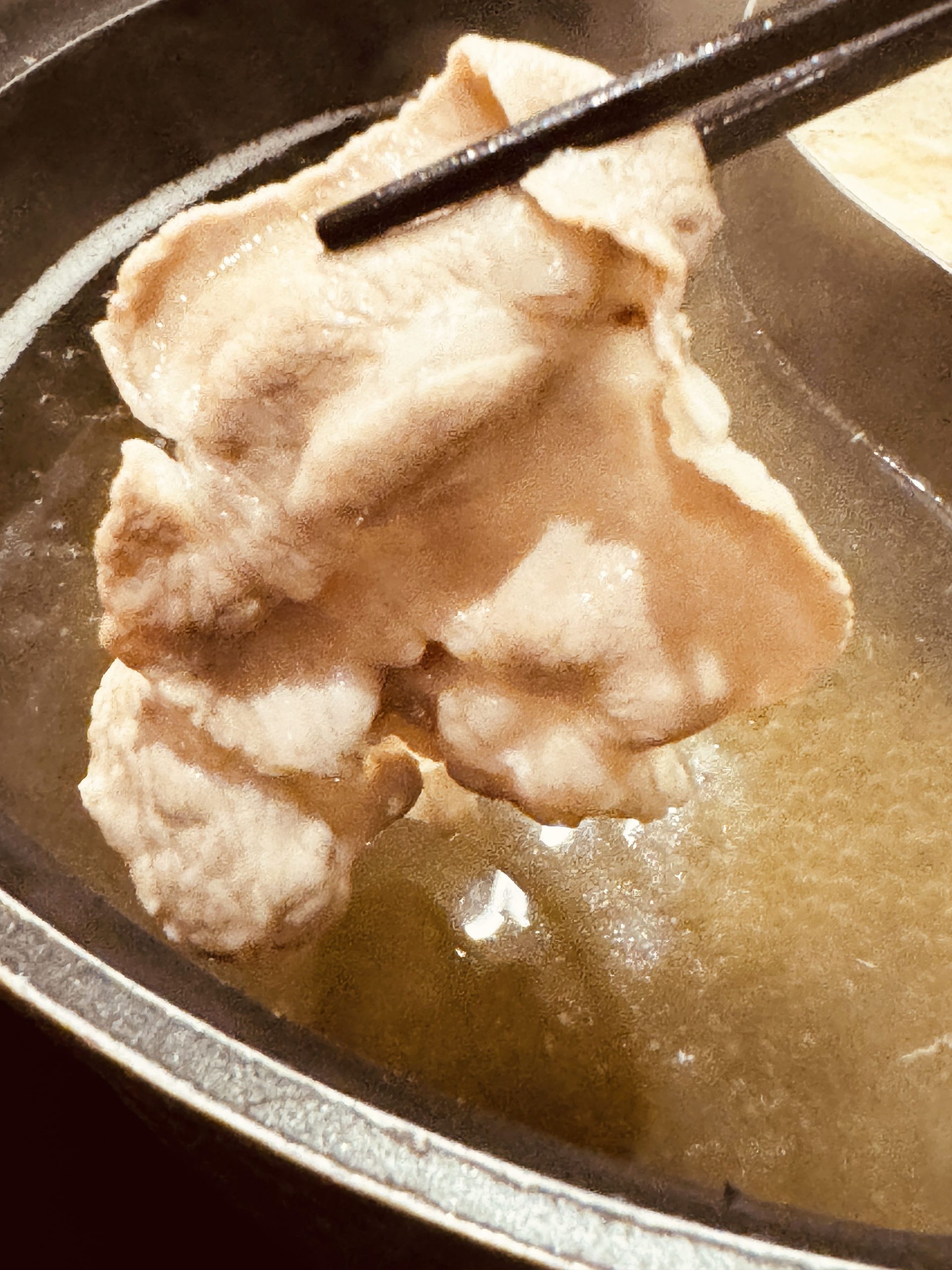 さっそく沸騰した出汁に浸して、しゃぶしゃぶします。