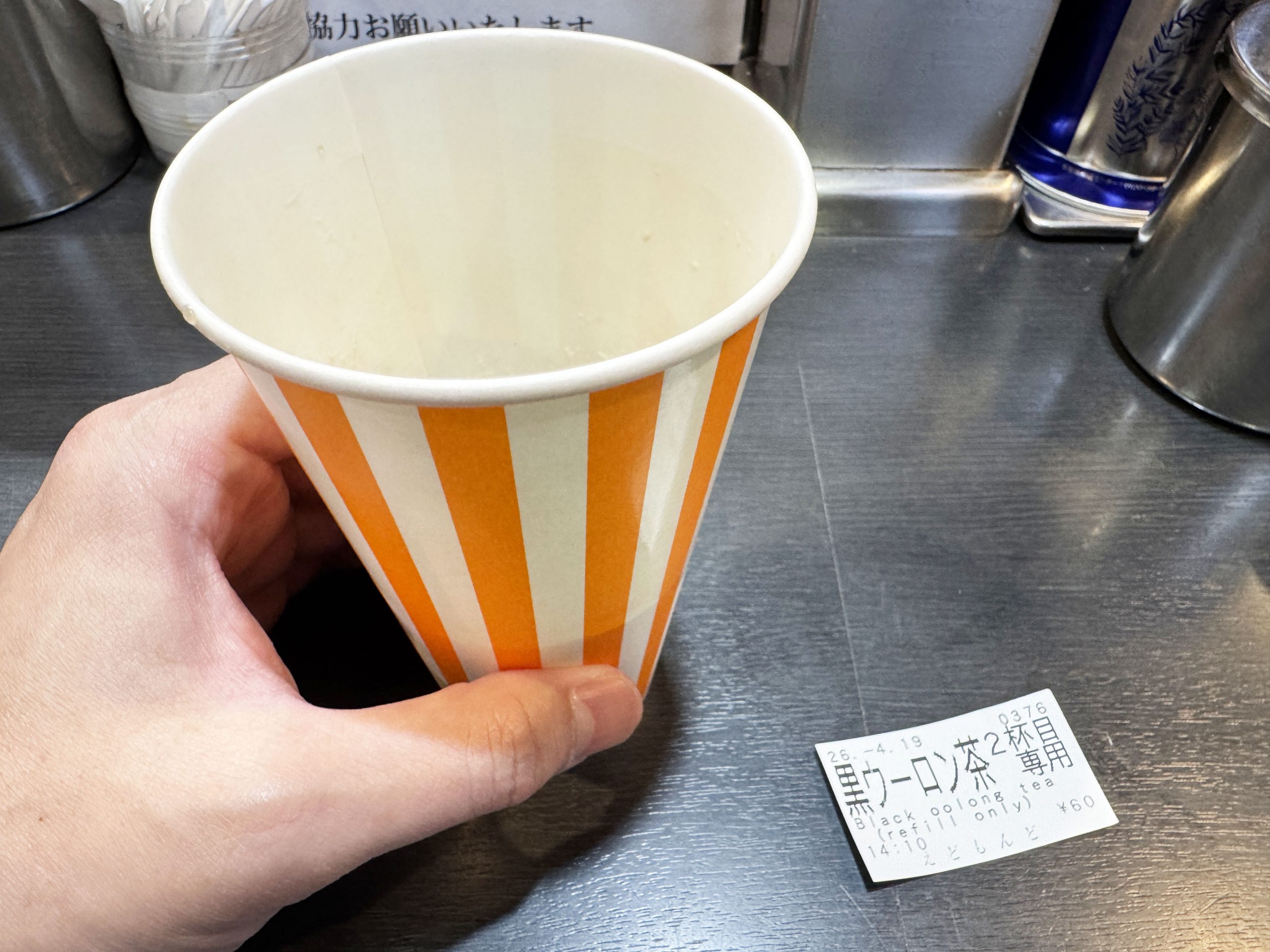 ちなみに黒ウーロン茶は、えどもんどオリジナル。1杯100円、おかわり60円なのでお得でごわす。安く美味しい黒ウーロン茶を販売してくれるエドモンドに感謝。その優しさに地鎮でサンクスの気持ちを伝えたい。店頭に自販機があるので、そこでペットボトルのお茶を買っても良き。