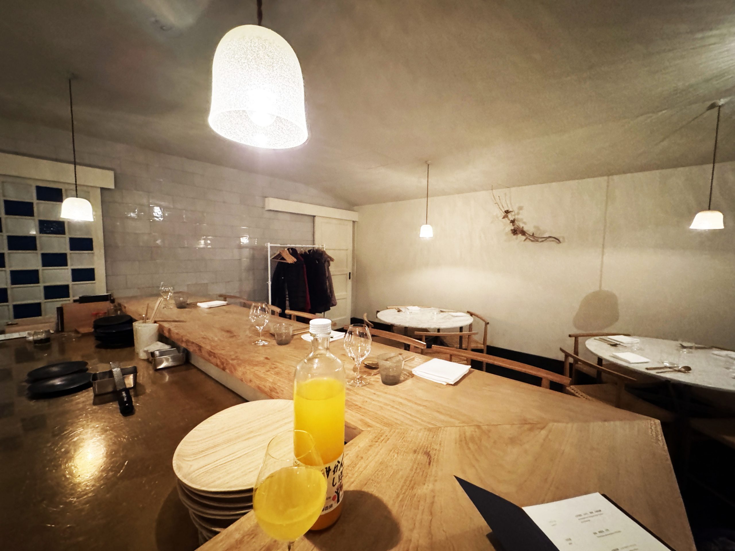 店内は、温かさと癒やしを感じる落ち着いた雰囲気。いい感じに明るすぎず、リラックスした状態でグルメが楽しめます。まず最初にオススメのお酒やジュースを楽しむことができます。料理に合わせ飲み物を出してくださるので、飲みたいだけ、満足できるまで飲めました。