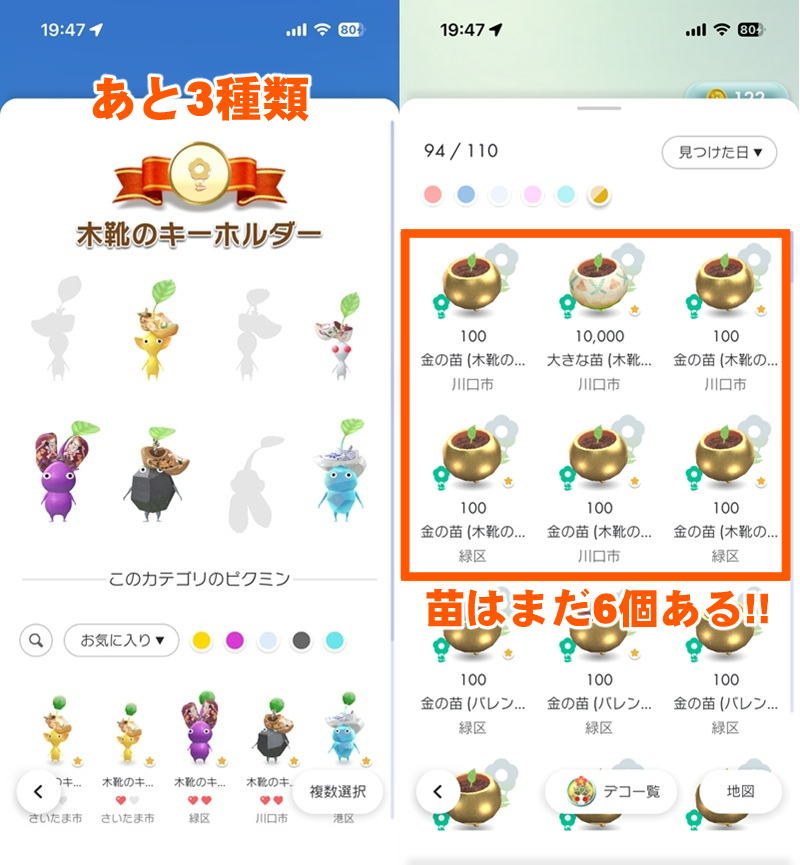 木靴のキーホルダーを身に付けたデコピクミン集めの進捗については、また別の機会に。