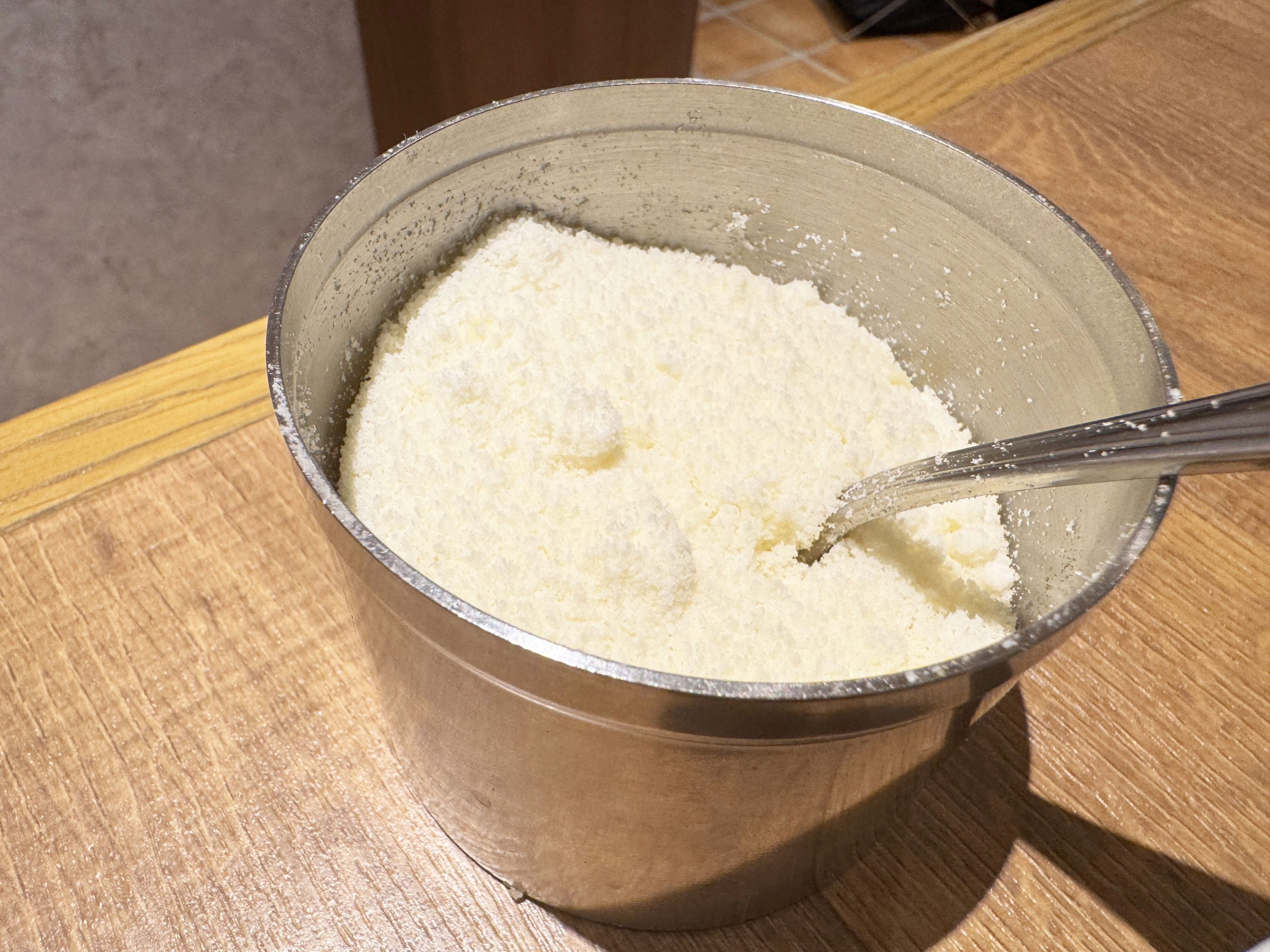 実は粉チーズもあるのですが、卓上に置かれていないことがあります。