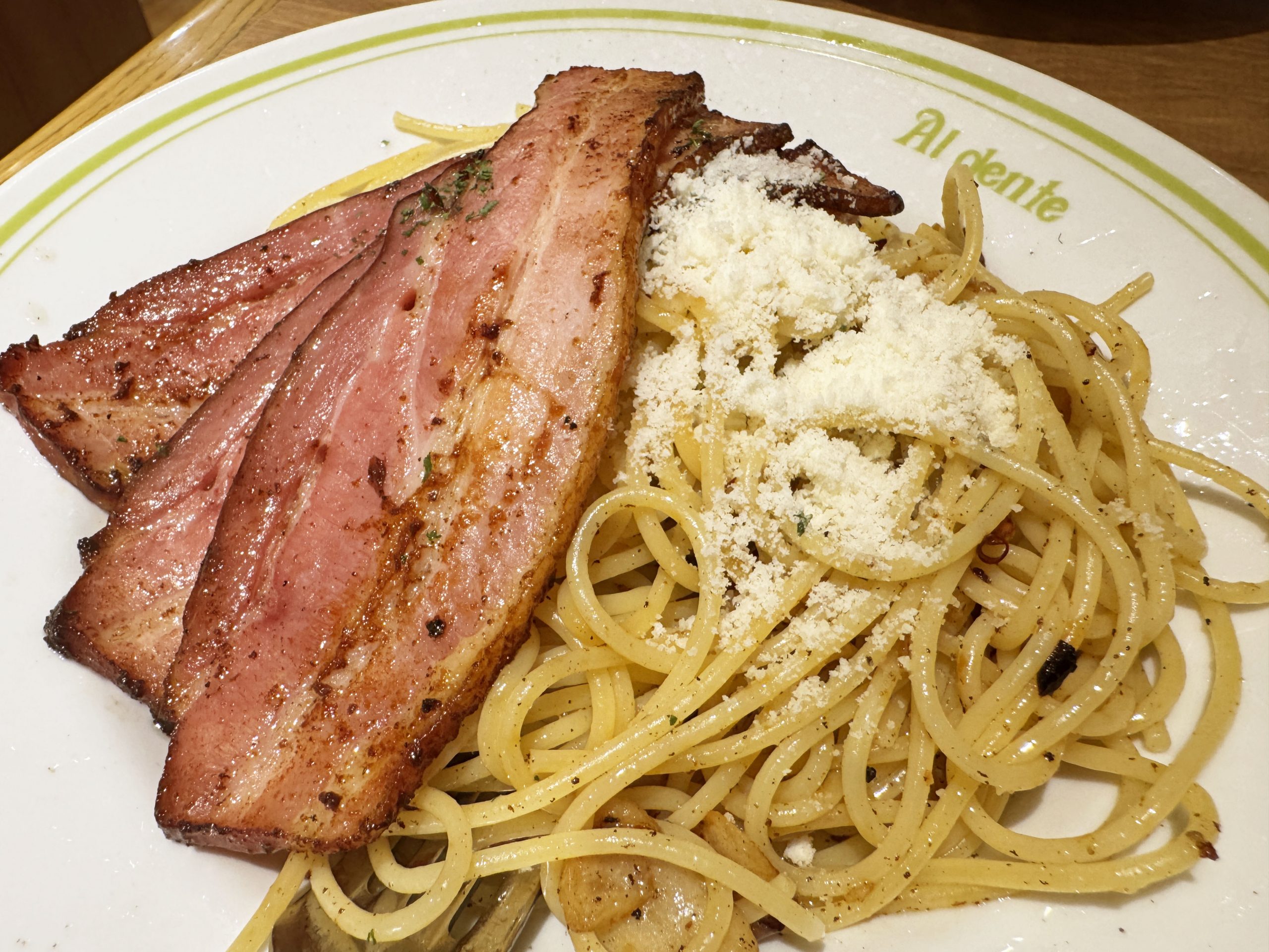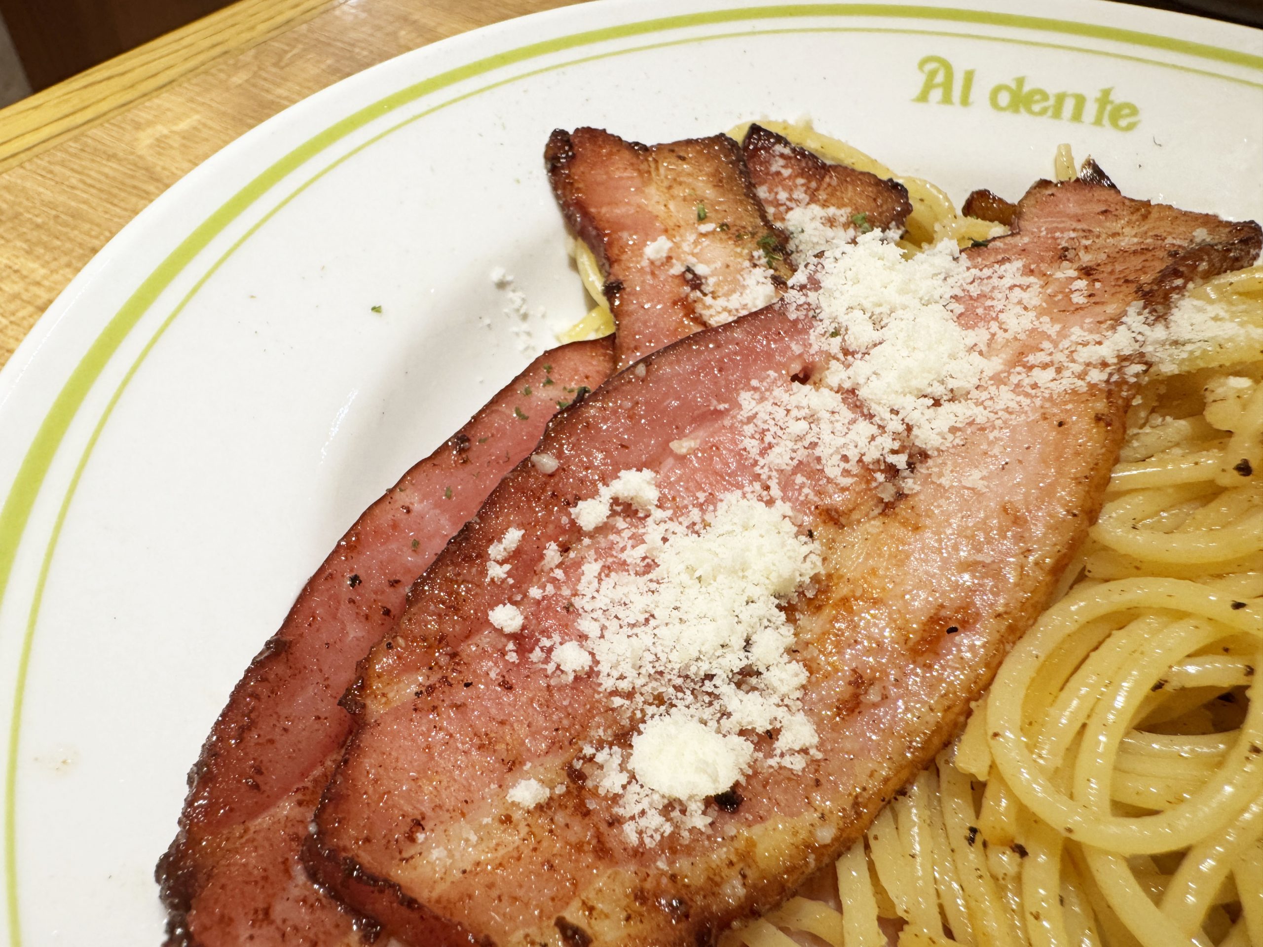 特に人気のメニューは「アリオオリオのベーコン添え」で、いわゆるペペロンチーノ。