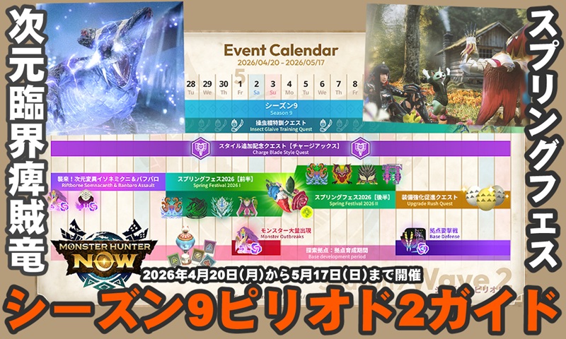 本記事では、2026年4月27日(日)より始まる「モンハンNowスプリングフェス2026」情報をおさらい。