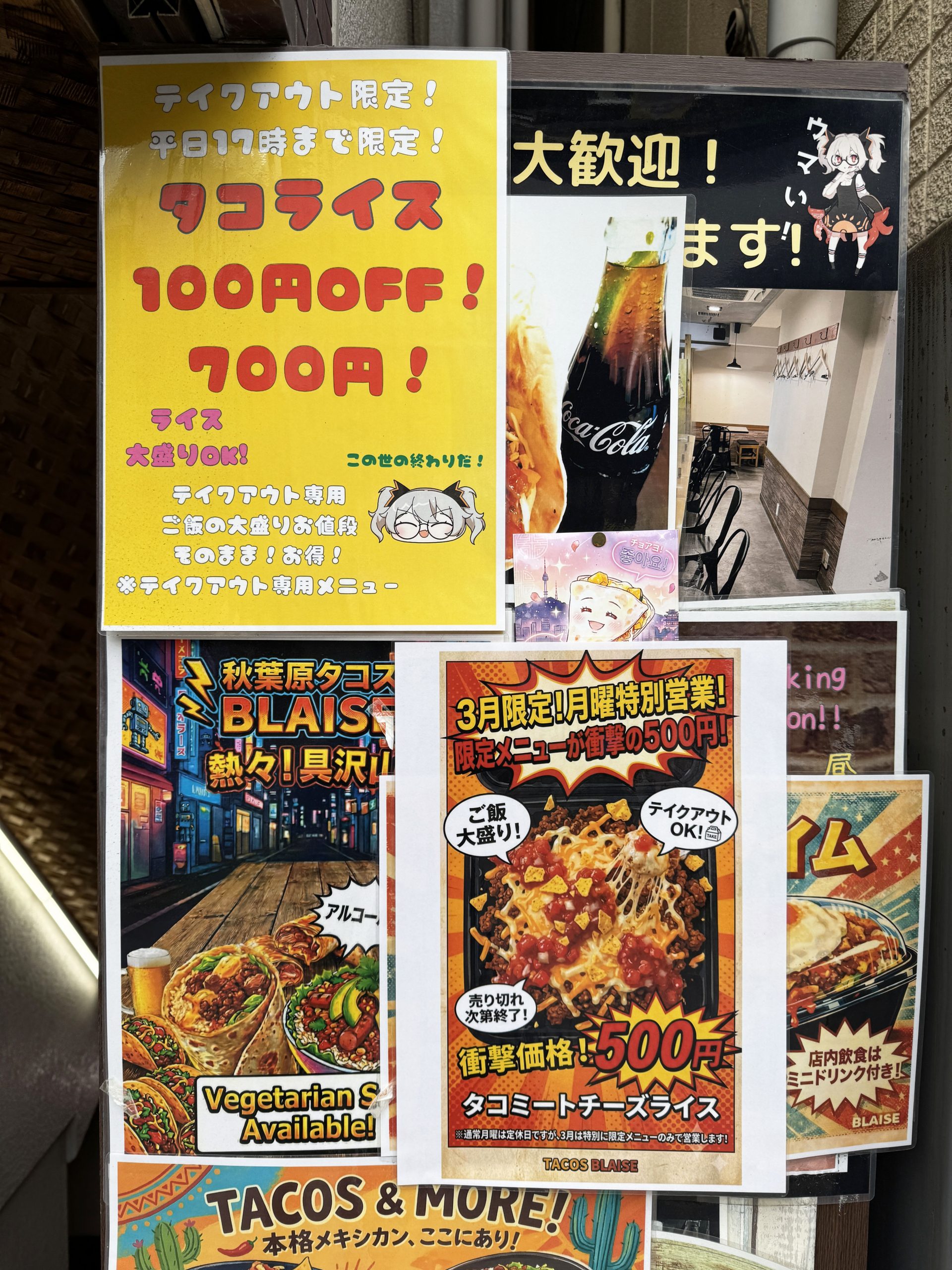 ※平日の14時以降と土日祝日の空いてるタイミング限定麺です🍜リスペークト!!! https://t.co/YebjhZiKS5 pic.twitter.com/vBDLXfYea1— 昼飲みタコス屋ブレイズ@アキバのタコス屋 (@BLAISE01600438) April 22, 2026