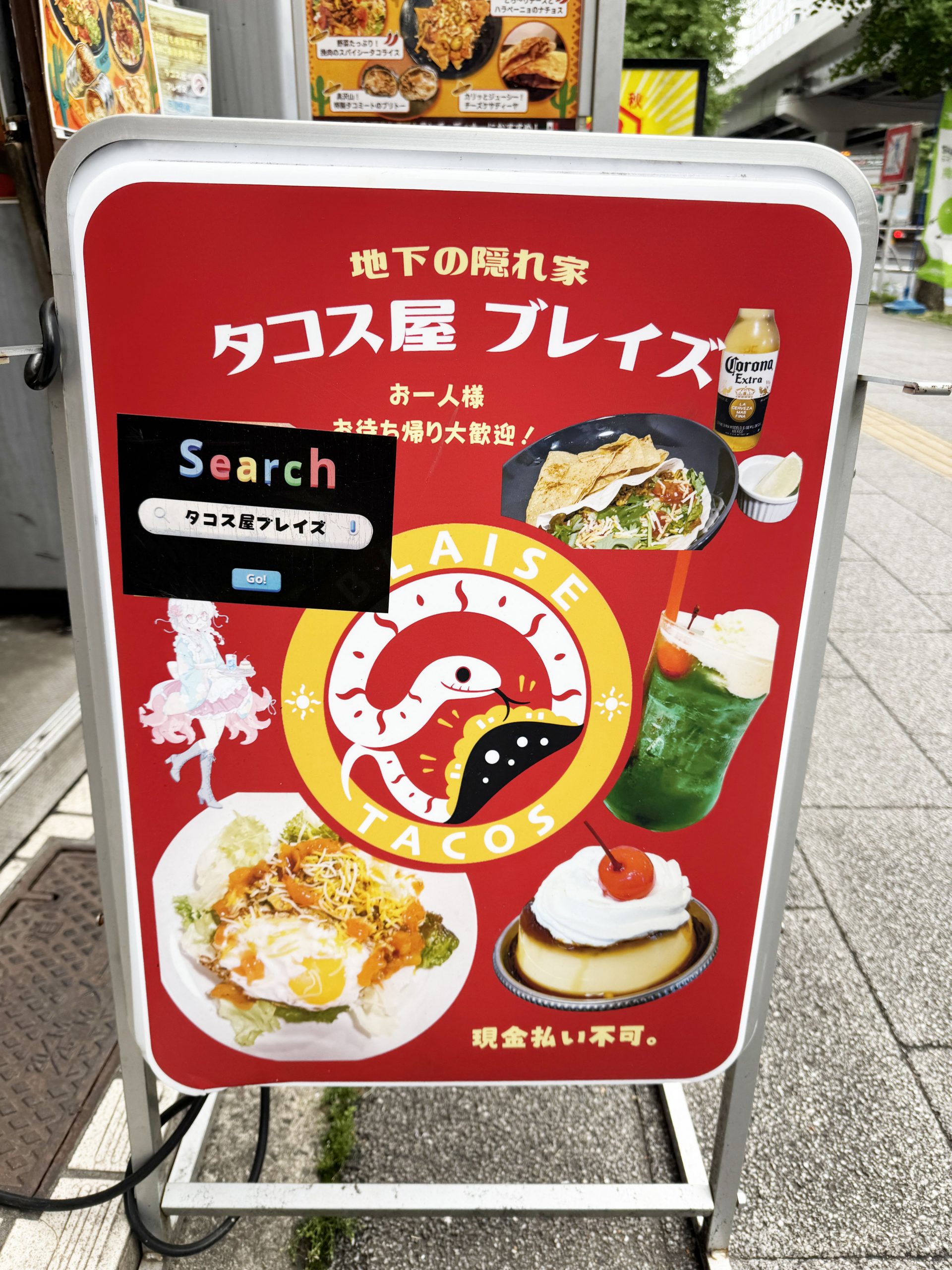 秋葉原でトップクラスのタコスが食べられる名店といえば「タコス屋ブレイズ」(東京都千代田区神田松永町17-5 相沢ビル B1F)。