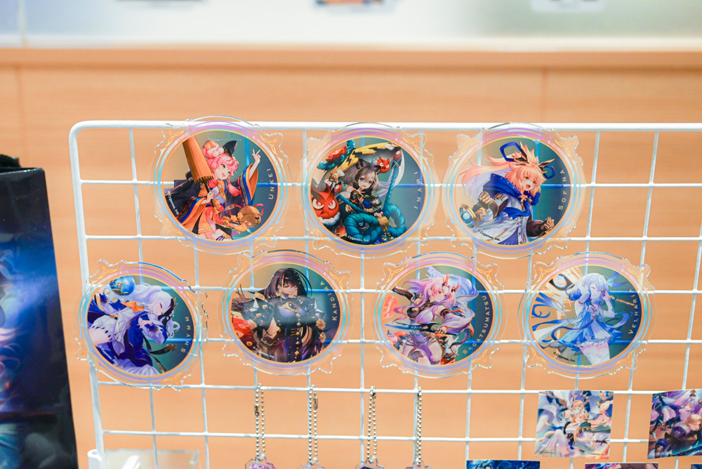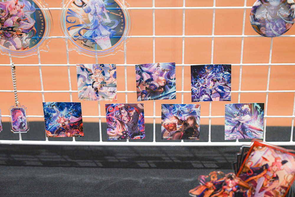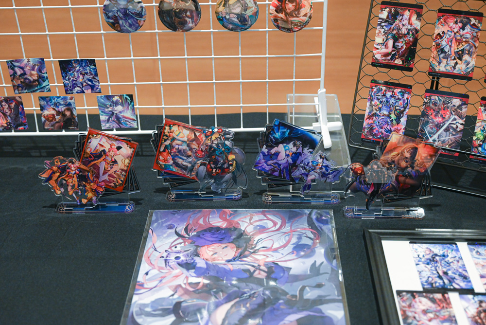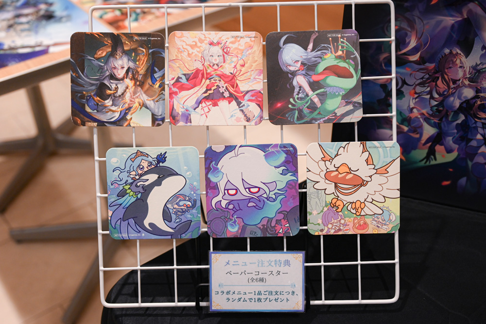 コラボカフェの楽しみは食事だけにとどまらない。会場では、ゲーム内カードイラストを使用したオリジナルグッズも多数展開されている。