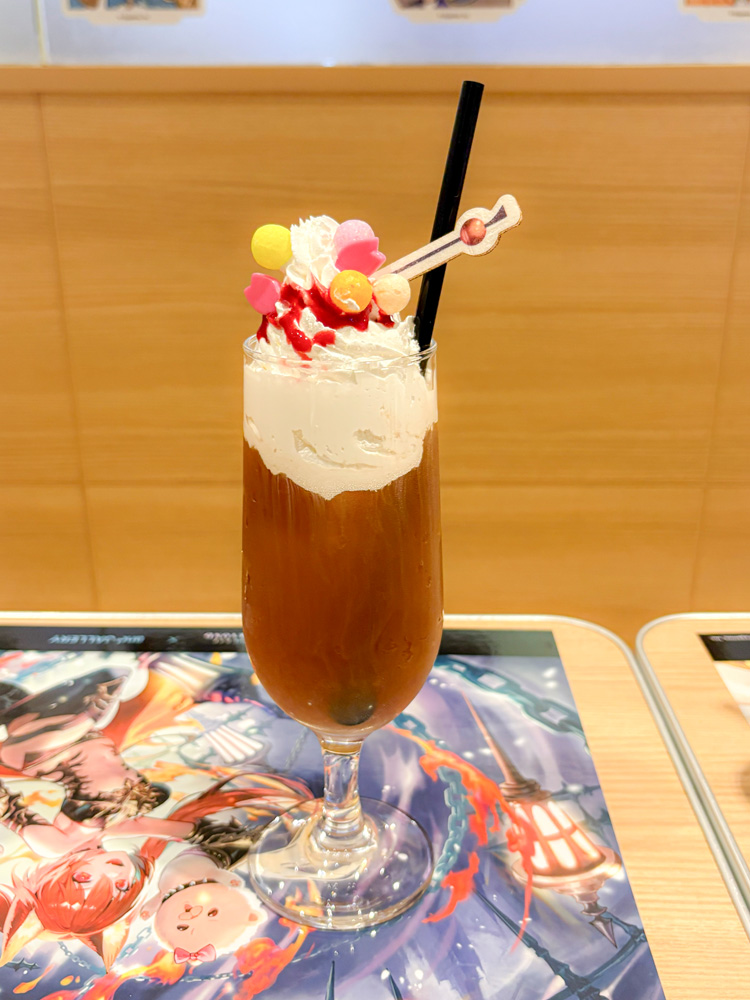 本コラボでは、フード4種・ドリンク4種の計8種類を展開。いずれもキャラクターや作中モチーフをイメージしたビジュアル&ネーミングで、メニュー表を眺めるだけでもファンとしては顔がほころぶ。