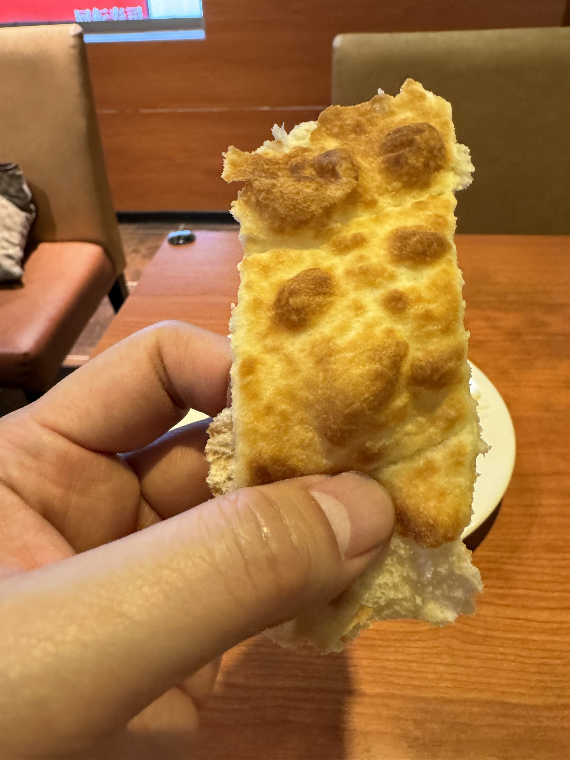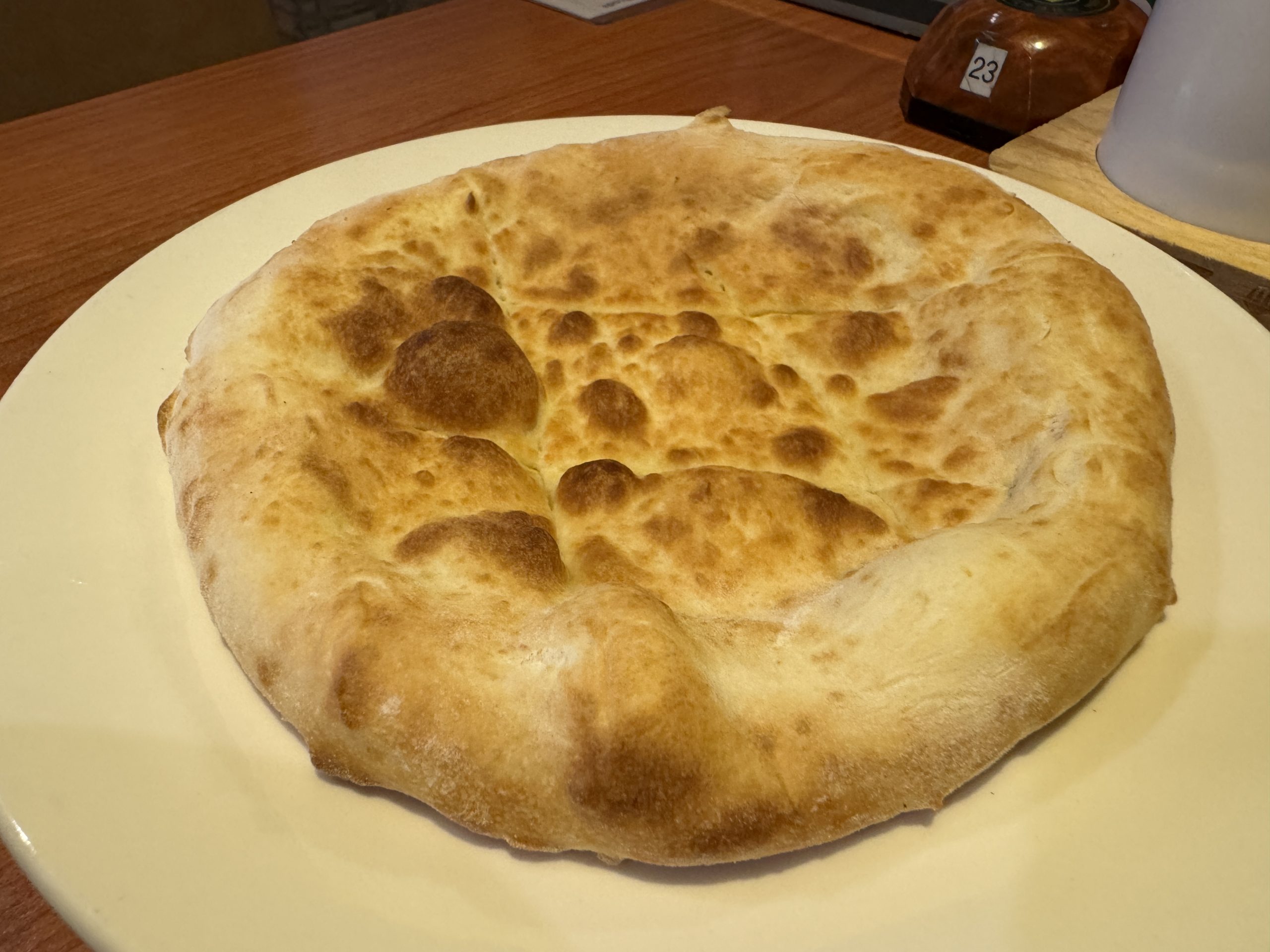 外円部はフカフカ、内円部はクリスピー、双方が楽しめるのもベスト。これは地味な存在ながらご褒美。カラッと仕上げられながらも、しっかりとモッチリ感を楽しませてくれる点は、日本のフォッカチオに負けない美味さがある。