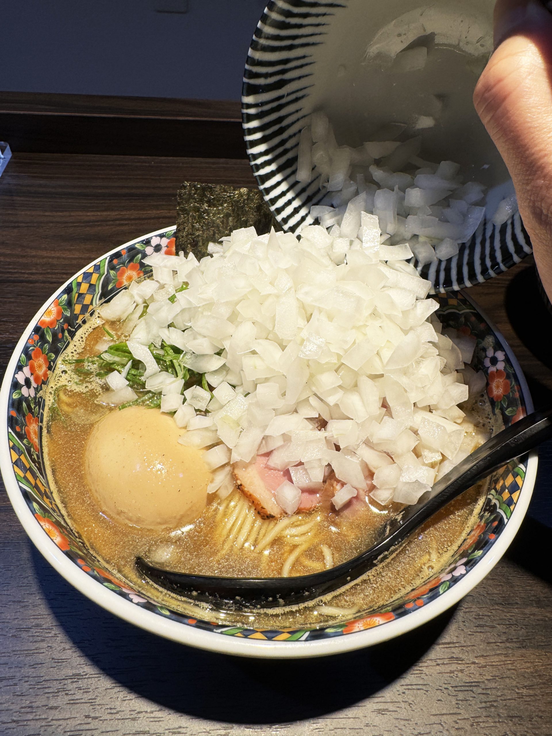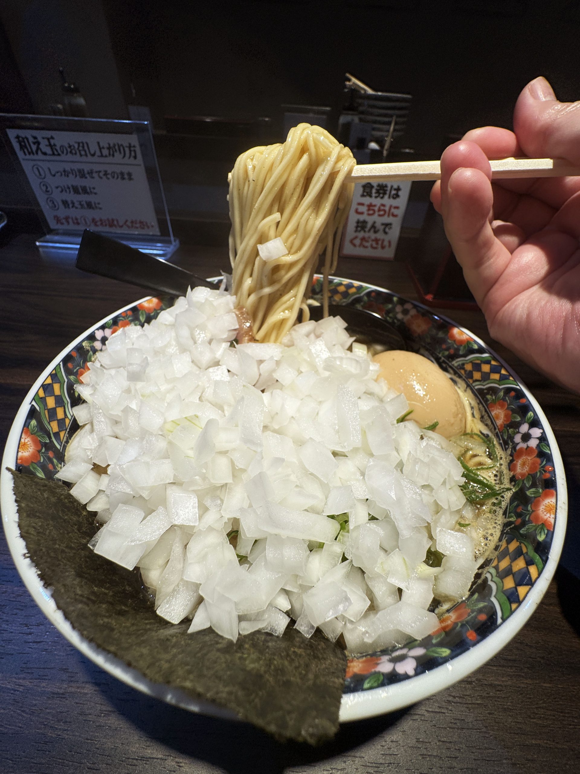 ヤバイ。マジウマすぎてまた神田のラーメン屋「まいまい」行ってしまった。ガッツリ濃密濃厚な煮干しの旨味大量。このスープに染まったらどんな食材も神域レベルで激ウマ化。もし食べるならタマネギマシマシを強く推す。タマネギ食券2枚で実現可能。スープに浸してレンゲでシャクシャク食べる。最高か https://t.co/1IEnLfwRbk pic.twitter.com/TxnNdhEWlP