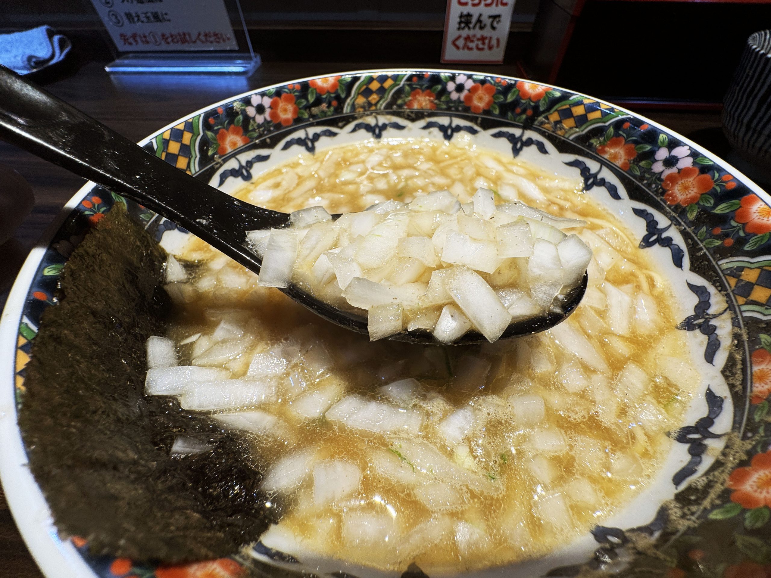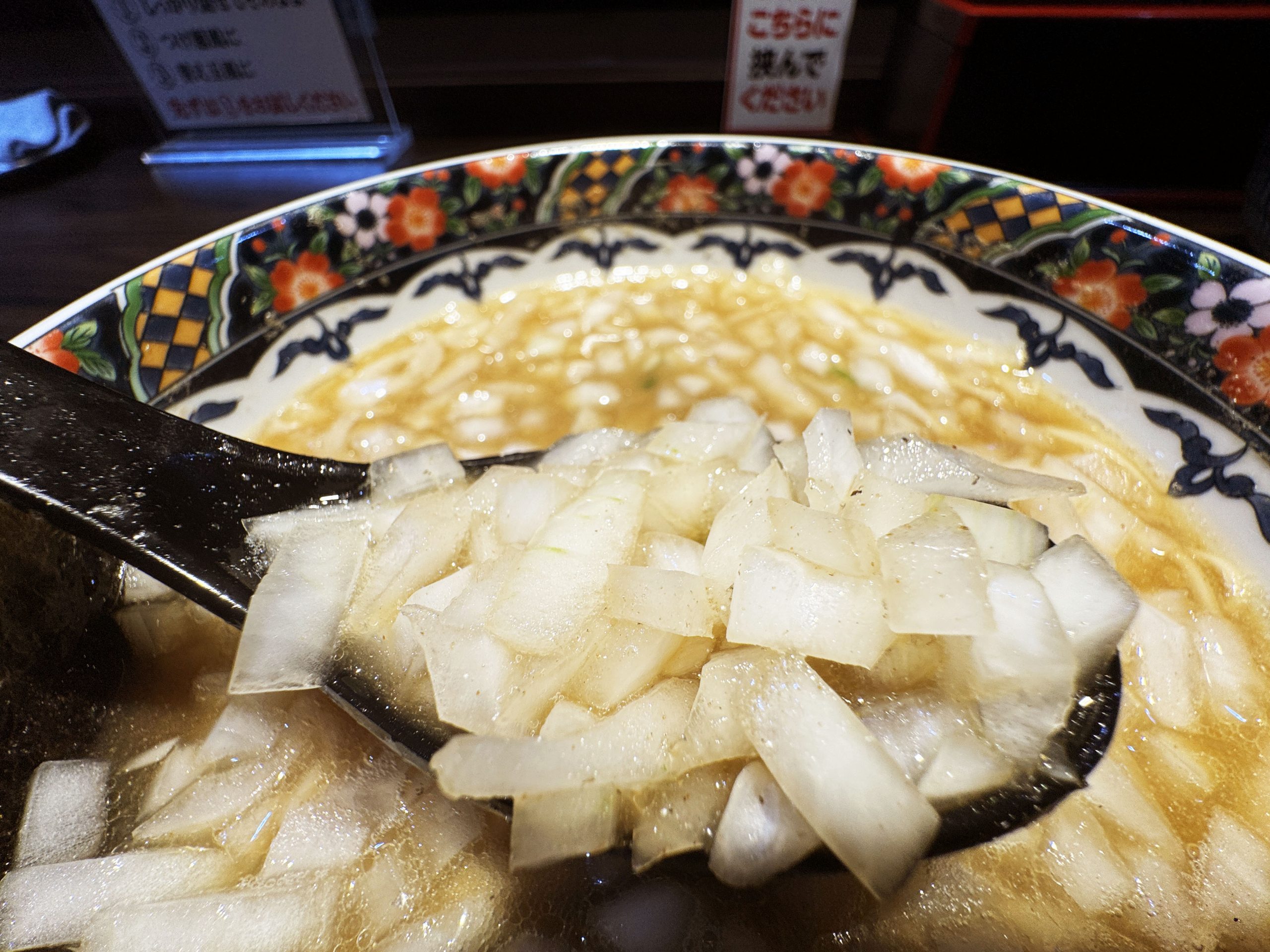 麺を食べきったら、そこからがタマネギの本領発揮。