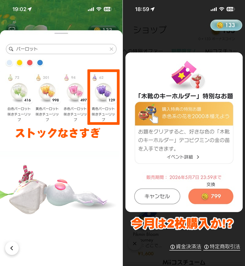 そして、まもなく終了する「チューリップフェスティバル」の限定デコピクミンをコンプリートできるのか。
