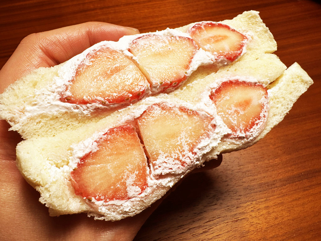 イチゴサンドも新鮮でジュワッと果汁が溢れるジューシーなイチゴが美味で。クリームも絶品である。もし札幌に行く機会があれば、ぜひとも『サンドリア』のサンドイッチを体験してほしい。