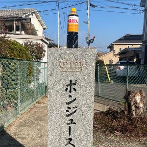 ミツカンの中の人が「ぽん酢」を「ポンジュース」の石碑に置いた結果
